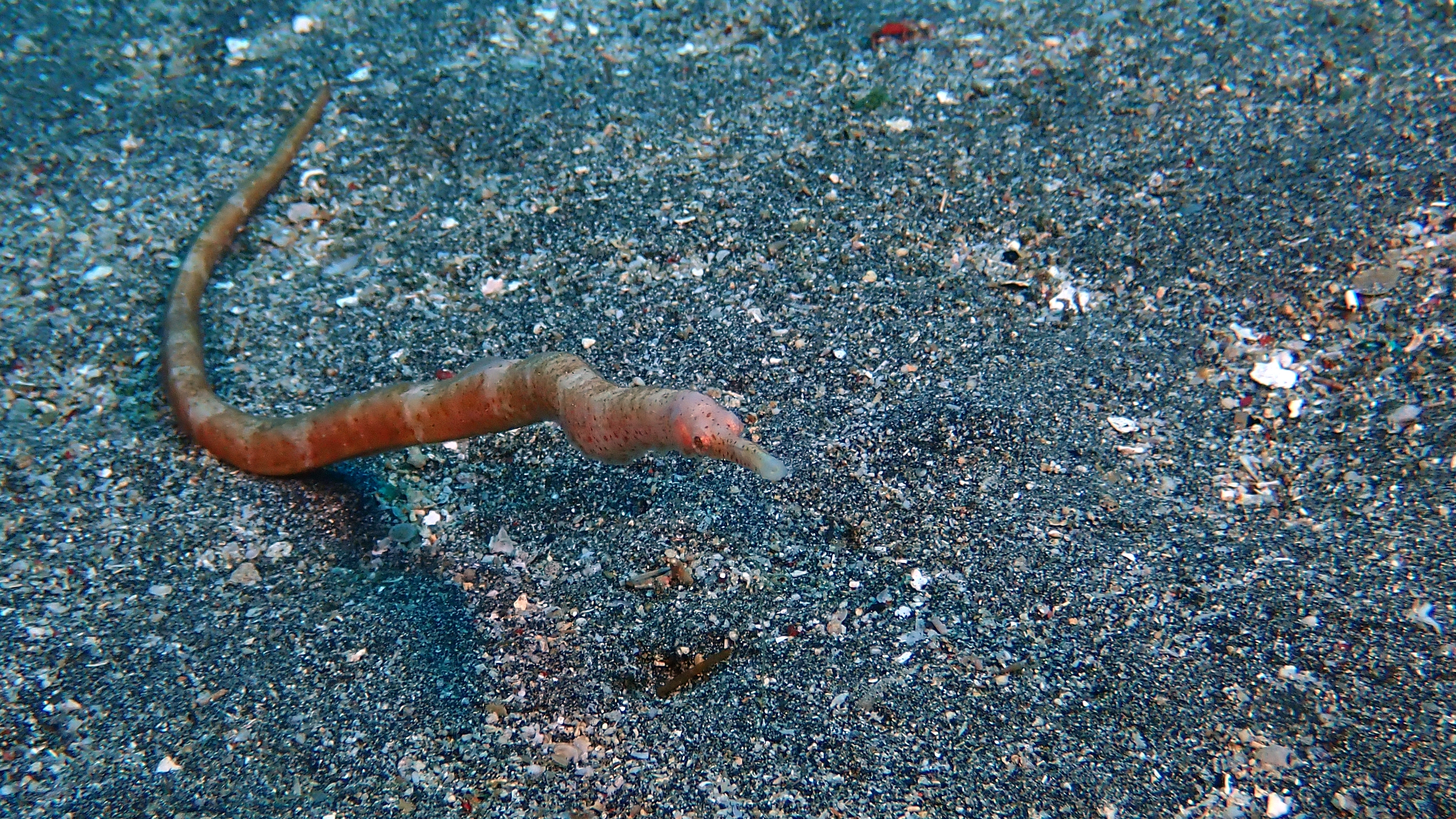 Heute standen wieder zwei Makro-Tauchgänge auf dem Programm. Besonders gefallen haben mir eine lilafarbene Nacktschnecke und ein leuchtend gelber Flötenfisch. Das absolute Highlight war jedoch ein nur knapp 2 cm großes Pygmäenseepferdchen – winzig und doch so beeindruckend! Am Abend nutzten wir die Happy Hour, und nach dem Essen saßen wir noch mit uns fünf Mitreisenden zusammen. Gemeinsam tauschten wir Erlebnisse aus und ließen beim Betrachten der Bilder den Tag entspannt ausklingen.