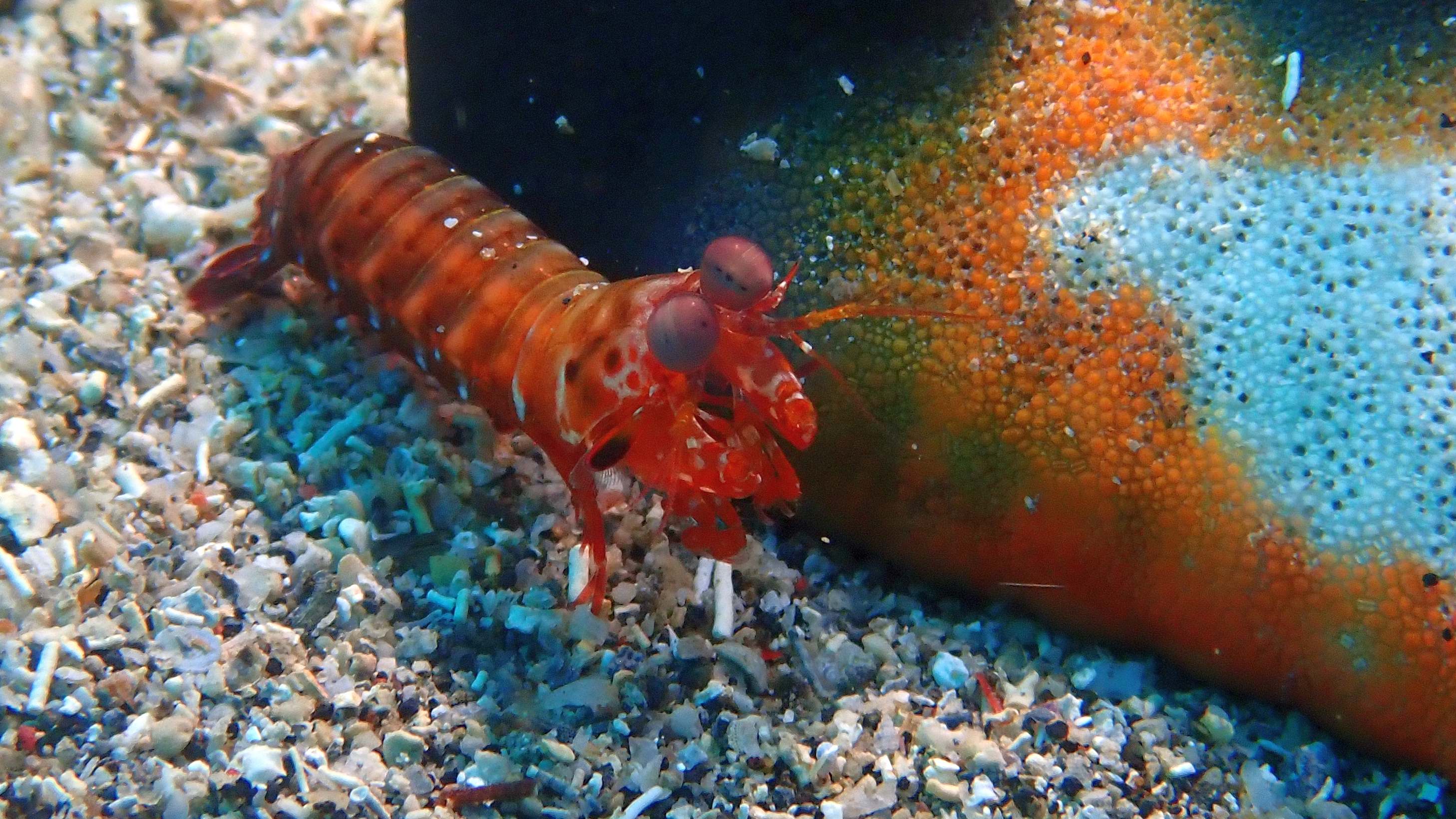 Auch heute unternahmen wir zwei wunderschöne Tauchgänge – und wieder war unser Dive Guide Dani an unserer Seite. Er begleitet uns seit Beginn der Reise und hat sich längst als einer der besten Guides erwiesen, die wir je hatten. Mit seiner Hilfe entdeckten wir erneut viele exotische Meeresbewohner: einen kleinen Fangschreckenkrebs,einen kleinen Octopus, eine winzige Sepia und einen ebenso kleinen Anglerfisch. Dank Danis scharfem Auge blieb uns nichts verborgen – jeder Tauchgang mit ihm ist ein kleines Abenteuer.