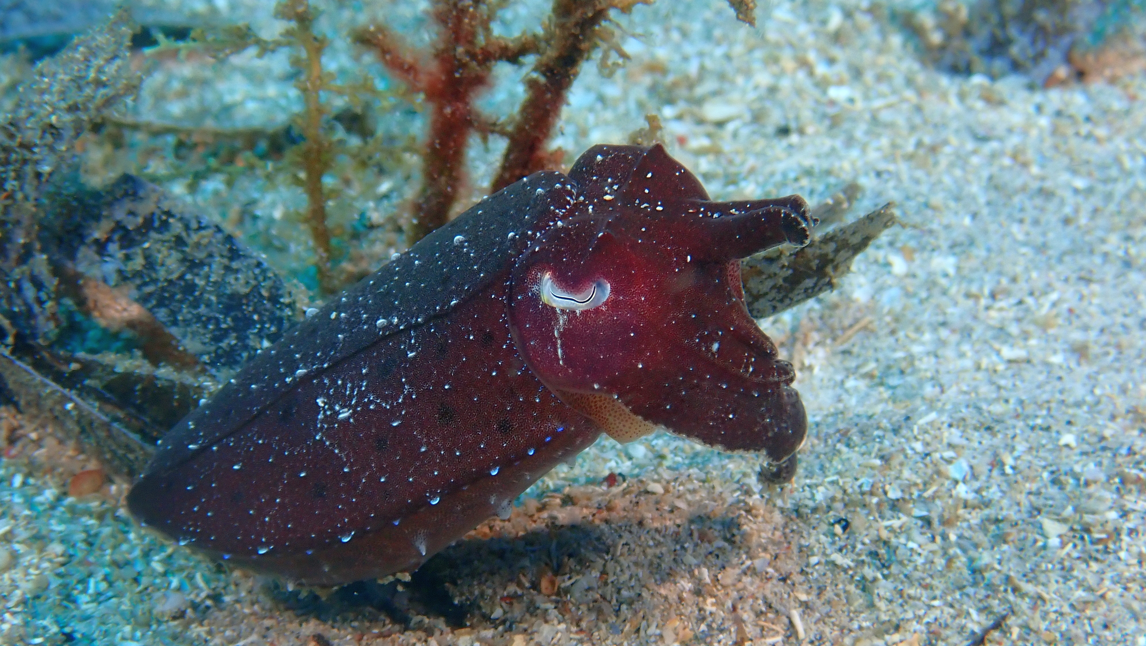 Auch heute unternahmen wir zwei wunderschöne Tauchgänge – und wieder war unser Dive Guide Dani an unserer Seite. Er begleitet uns seit Beginn der Reise und hat sich längst als einer der besten Guides erwiesen, die wir je hatten. Mit seiner Hilfe entdeckten wir erneut viele exotische Meeresbewohner: einen kleinen Fangschreckenkrebs,einen kleinen Octopus, eine winzige Sepia und einen ebenso kleinen Anglerfisch. Dank Danis scharfem Auge blieb uns nichts verborgen – jeder Tauchgang mit ihm ist ein kleines Abenteuer.