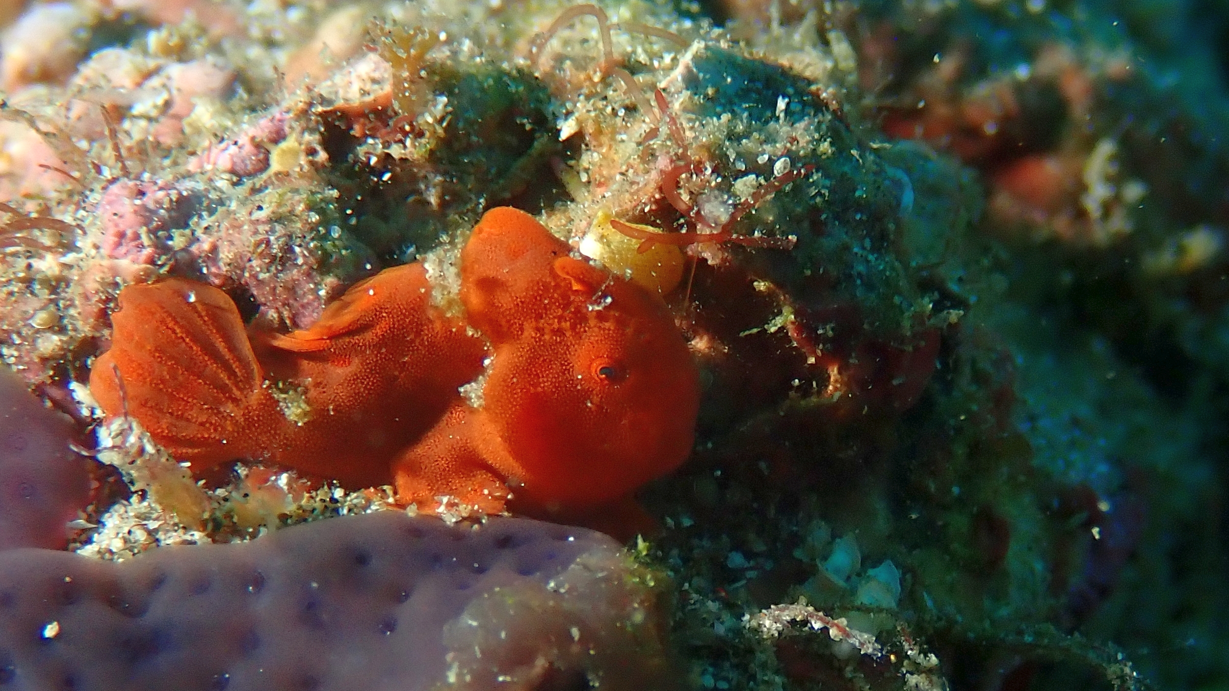 Heute unternahmen wir zwei weitere Tauchgänge im dunklen Sand von Lembeh – wieder ganz auf der Suche nach den berühmten „Crittern“. Schon nach kurzer Zeit zeigte sich, wie vielfältig dieses Revier ist: Der Walkman und der Finger-Leierfisch präsentierten sich diesmal in ganz anderen Farben als am Vortag, und auch die Nacktschnecken zeigten neue, faszinierende Varianten. Besonders beeindruckend waren jedoch die vielen Anglerfische – in Schwarz, Weiß, leuchtendem Gelb, Orange und Rot. Eine wahre Farbenexplosion auf dunklem Grund! Das absolute Highlight waren drei „haarige“ Anglerfische in Weiß, Braun und Orange – außergewöhnlich schön und einfach faszinierend.