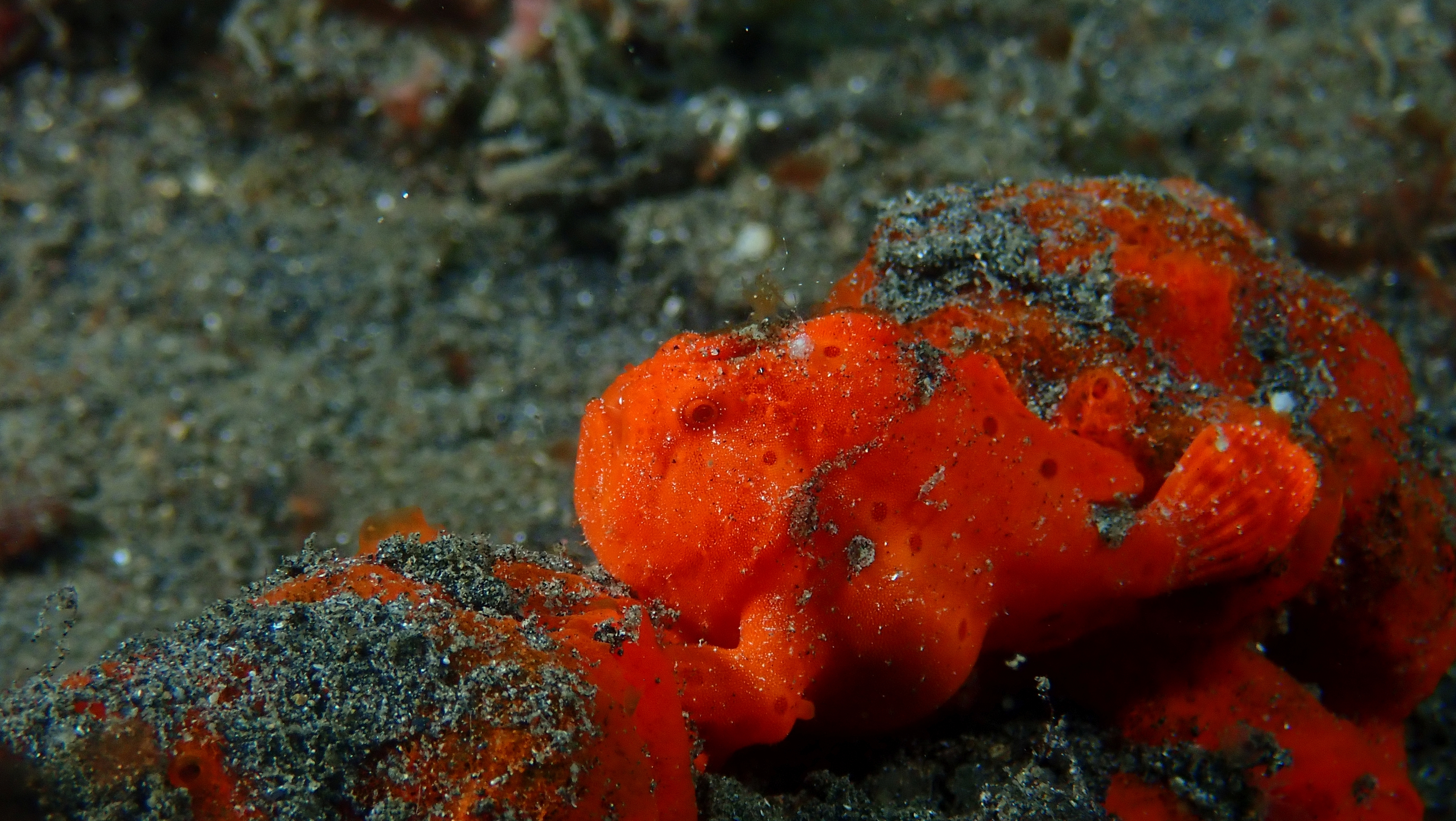 Heute unternahmen wir zwei weitere Tauchgänge im dunklen Sand von Lembeh – wieder ganz auf der Suche nach den berühmten „Crittern“. Schon nach kurzer Zeit zeigte sich, wie vielfältig dieses Revier ist: Der Walkman und der Finger-Leierfisch präsentierten sich diesmal in ganz anderen Farben als am Vortag, und auch die Nacktschnecken zeigten neue, faszinierende Varianten. Besonders beeindruckend waren jedoch die vielen Anglerfische – in Schwarz, Weiß, leuchtendem Gelb, Orange und Rot. Eine wahre Farbenexplosion auf dunklem Grund! Das absolute Highlight waren drei „haarige“ Anglerfische in Weiß, Braun und Orange – außergewöhnlich schön und einfach faszinierend.