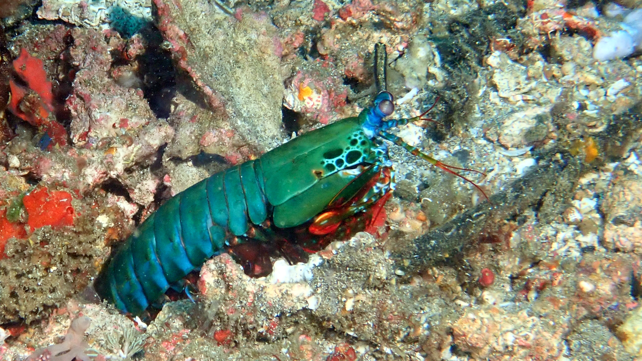 Heute hatten wir endlich das Glück, einen Fangschreckenkrebs zu beobachten, der sich mutig weit aus seiner Höhle herausgewagt hat. Auch das gelbe und das rote Seepferdchen waren wunderschön anzusehen. Das absolute Highlight des Tages waren jedoch die beiden „Fransen-Drachenköpfe“ und die zwei Harlekingarnelen – selten und faszinierend zugleich.