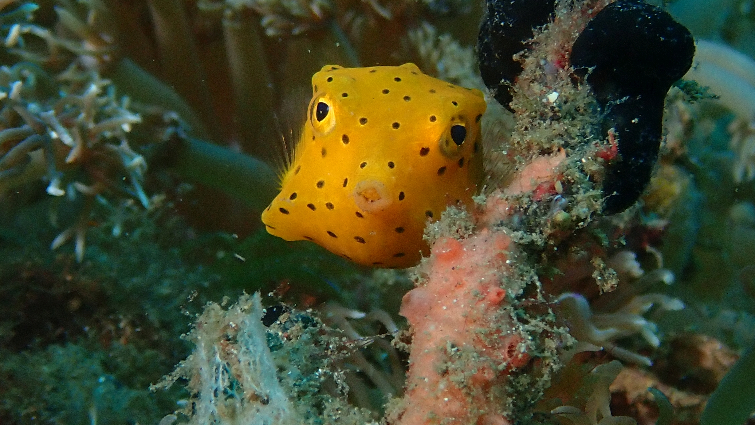 Heute hatten wir endlich das Glück, einen Fangschreckenkrebs zu beobachten, der sich mutig weit aus seiner Höhle herausgewagt hat. Auch das gelbe und das rote Seepferdchen waren wunderschön anzusehen. Das absolute Highlight des Tages waren jedoch die beiden „Fransen-Drachenköpfe“ und die zwei Harlekingarnelen – selten und faszinierend zugleich.
