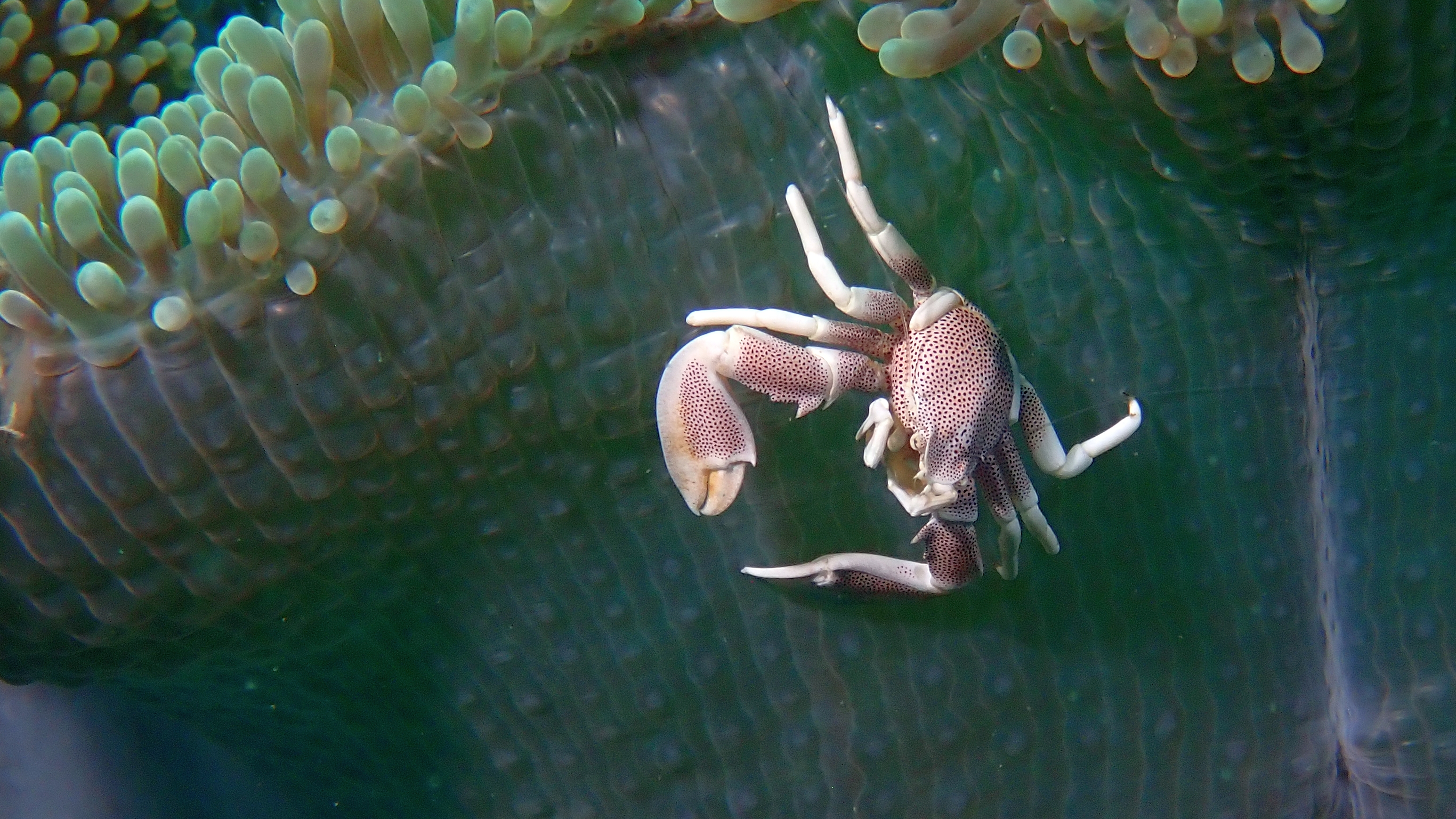 Ein besonderer Hingucker war eine Imperatorgarnele, die wie ein winziger Jockey auf einer Schnecke „ritt“. Zum Schluss tauchte sogar eine Flamboyant-Sepia auf. Leider war genau in diesem Moment der Akku meiner Kamera fast leer, sodass ich nur noch Fotos machen, aber keinen Film mehr aufnehmen konnte.