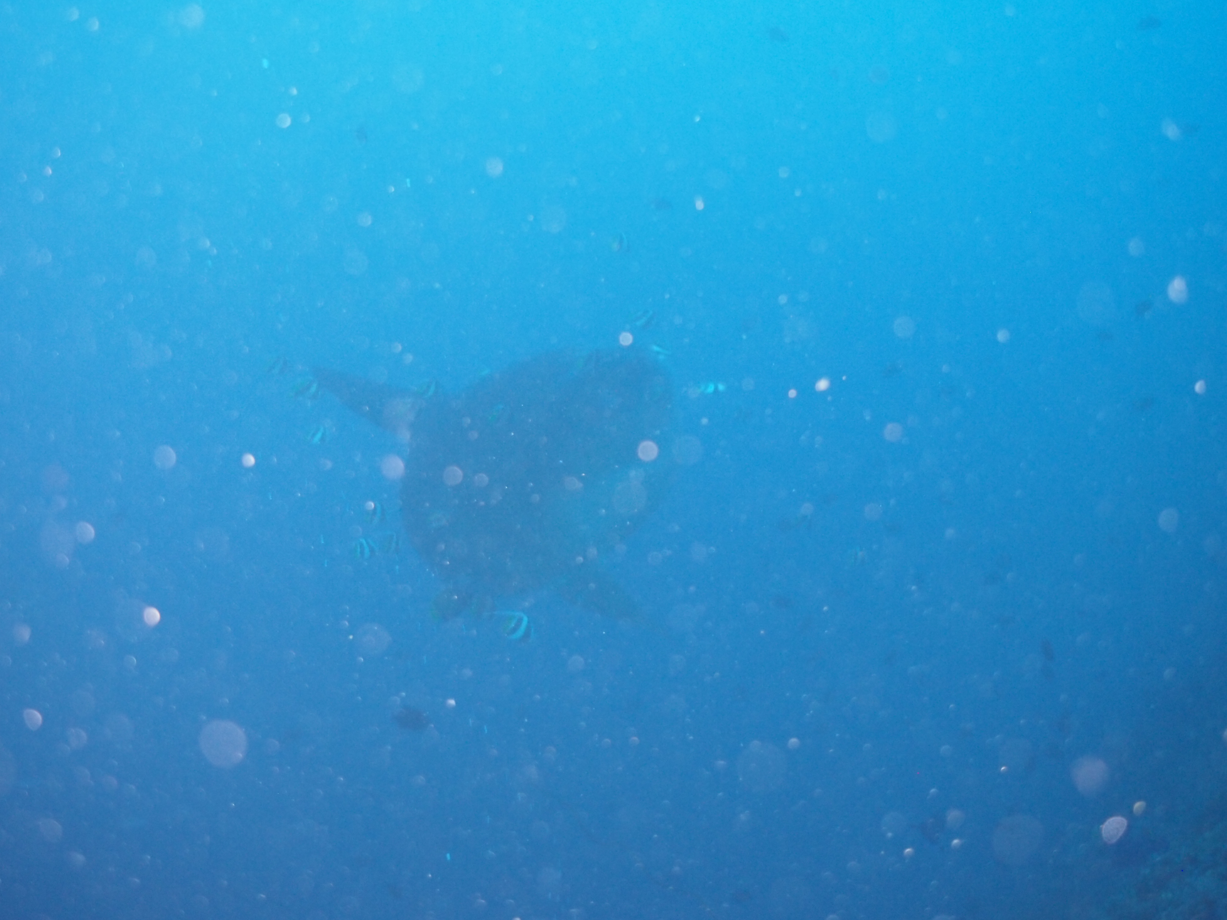 Heute Morgen durfte ich endlich Andrea zum Geburtstag gratulieren und sie hat ihren E-Book Reader bekommen. Wir sind nach dem Frühstück dann wieder zum Tauchen abgeholt worden. Diesmal kam Roger mit. Zuerst hat er uns zum New Manta Point gebracht wo wir dann auch 3 Mantas gesehen haben. Nach dem Mittagessen ging es dann zum Tauchplatz Crystal Bay. Wir konnten dort auf 20 m warten während Roger bei 40 m auf Mola suche ging. Nach einer Viertelstunde kam er dann zurück und hat weiter seitlich nochmal gesucht und tatsächlich dort war er dann. Wir konnten den Mondfisch knapp 10 Minuten lang beobachten und Bilder und kurze Videos drehen. Dann ist er mit ein paar schnellen Flossenschlägen davon. Wir waren überglücklich einen Mondfisch gesehen zu haben. Auf dem Rückweg sah ich dann noch einen zweiten im Blauwasser. Abends sind wir dann noch einmal ins Restaurant des ENA - Dive Center gefahren und haben uns über die tollen Erlebnisse unterhalten und mit Roger selbstgemachte Tauchbilder ausgetauscht.
