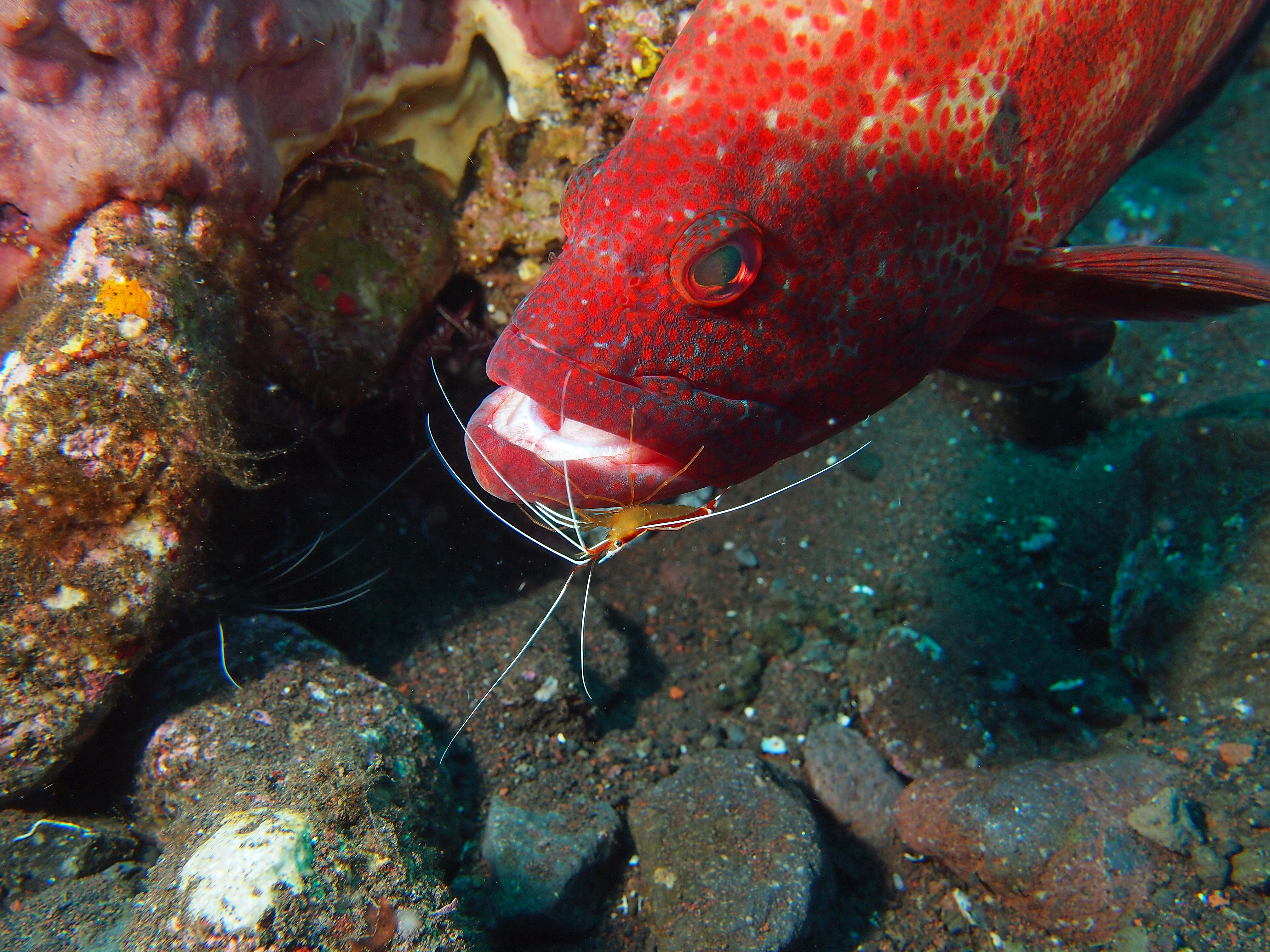 An unserem letzten Tauchtag in Tulamben hatten wir uns vorgenommen 3-mal zu tauchen. Auf allen 3 TG gab es viel Makro zu sehen. Besonders gefallen hat uns der 3. TG an einem älteren Hotel welches wohl hauptsächlich von Guids benutzt wird. Wir sahen dort einen großen schwarzen Schaukelfisch, 4 Geisterfetzenfische einen Fangschreckenkrebs und 2 Putzerstationen mit vielen Garnelen. Es war zwar nicht besonders tief aber da es schon unser 3. TG war und man dauernd was neues entdeckte mussten wir doch sehr aufpassen nicht in die Deko zu kommen. Wir waren alle sehr begeistert und uns einig das dies einer der schönsten Tauchgänge war.