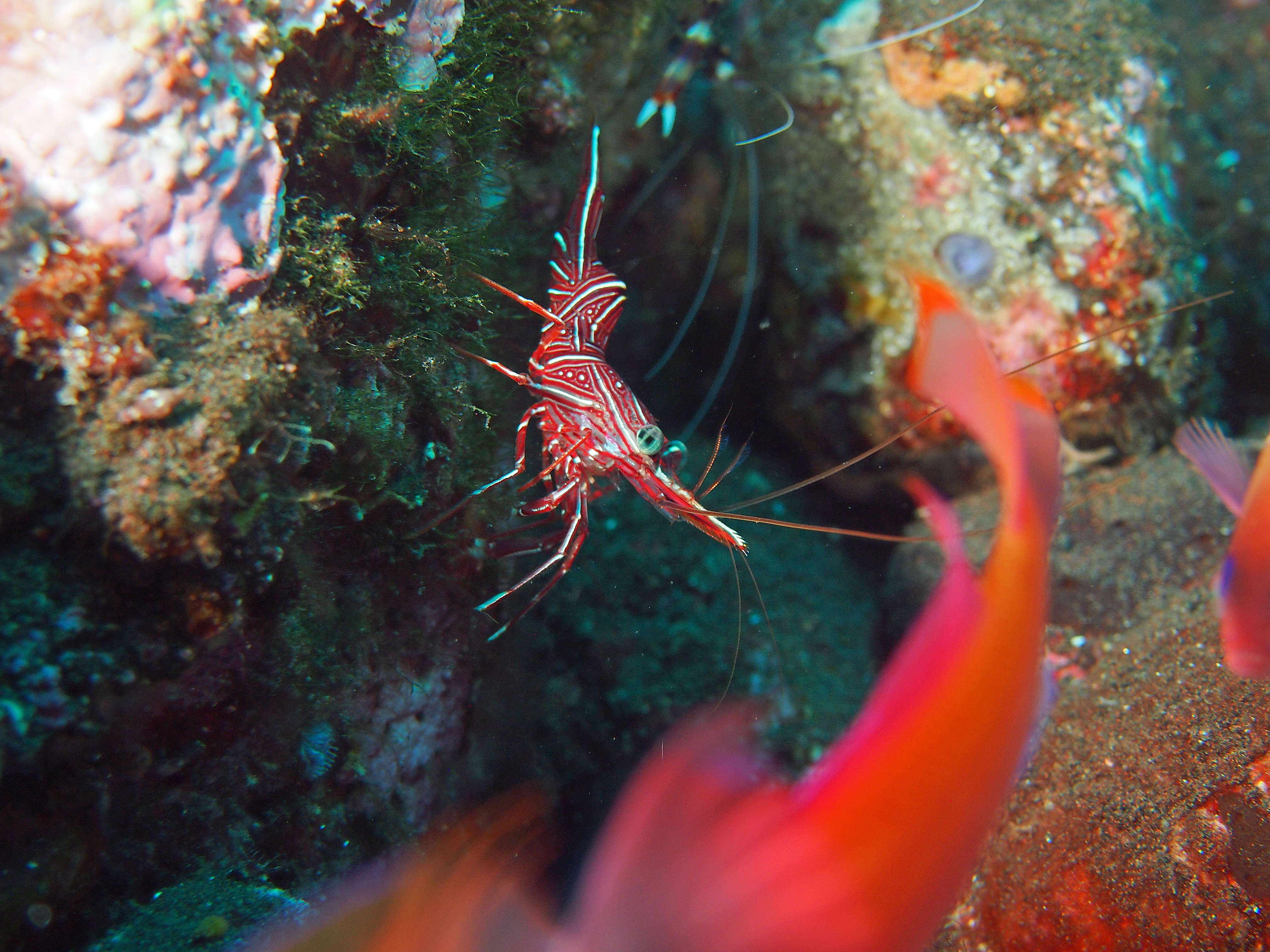 An unserem letzten Tauchtag in Tulamben hatten wir uns vorgenommen 3-mal zu tauchen. Auf allen 3 TG gab es viel Makro zu sehen. Besonders gefallen hat uns der 3. TG an einem älteren Hotel welches wohl hauptsächlich von Guids benutzt wird. Wir sahen dort einen großen schwarzen Schaukelfisch, 4 Geisterfetzenfische einen Fangschreckenkrebs und 2 Putzerstationen mit vielen Garnelen. Es war zwar nicht besonders tief aber da es schon unser 3. TG war und man dauernd was neues entdeckte mussten wir doch sehr aufpassen nicht in die Deko zu kommen. Wir waren alle sehr begeistert und uns einig das dies einer der schönsten Tauchgänge war.