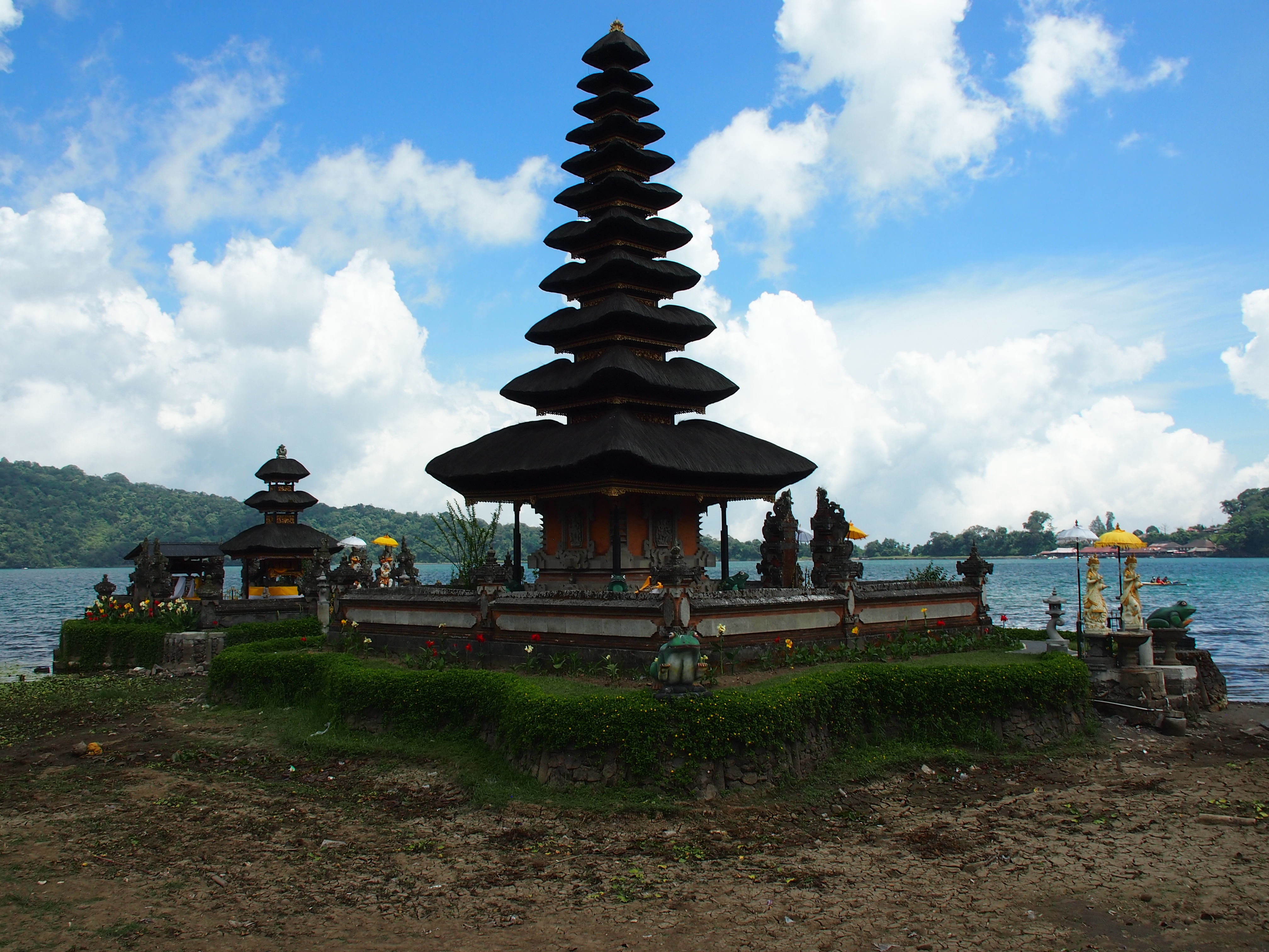 Weiter ging die Fahrt dann in die Berge. Unterwegs gab es von einem Aussichtspunkt einen tollen Blick auf die beiden Zwillingsseen. Der nächste Punkt auf unserem Programm war dann der Danu Beratan Tempel. Ein Hinduistischen Tempel der aber zumindest im Außenbereich mehr nach Ausflugsziel für Familien aussieht. Gleich daneben war der tropische Markt auf dem viele Gewürze und tropischen Früchte angeboten wurden. Wir haben aber nur um ein paar gewürzte Erdnüsse und aus Süßkartoffeln gebacken Chips mit Palmzucker gefeilscht. Nach dem Mittagessen war unser letzter Programmpunkt der Taman Ayun Tempel welcher mit einem Wassergarten umgeben ist. Übernachtet haben wir im Adhi Cottage in Ubud. Vorher sind wir noch ein bisschen durch Ubud geschlendert und haben uns ein kleines Restaurant zum Abendessen gesucht.