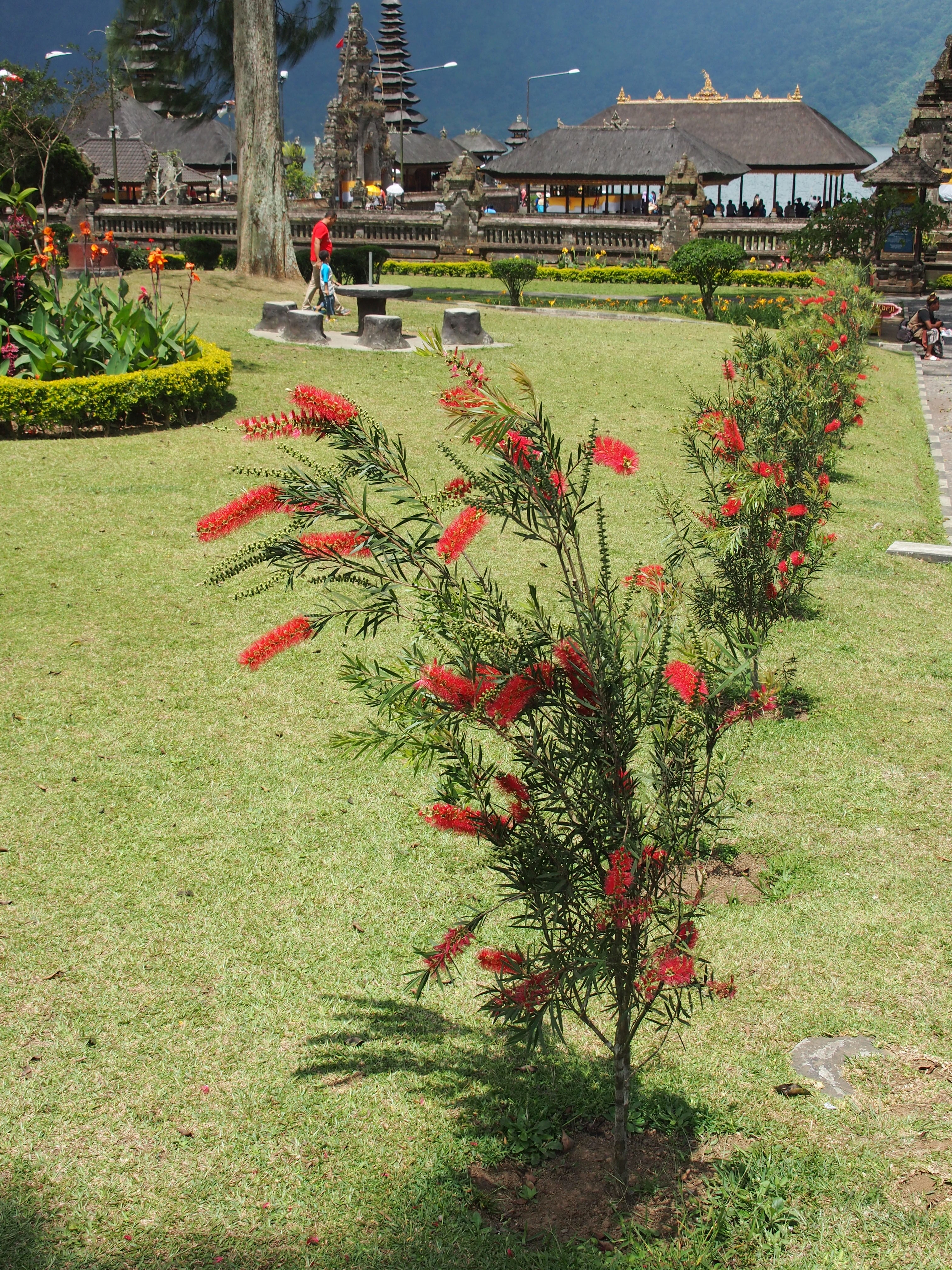 Weiter ging die Fahrt dann in die Berge. Unterwegs gab es von einem Aussichtspunkt einen tollen Blick auf die beiden Zwillingsseen. Der nächste Punkt auf unserem Programm war dann der Danu Beratan Tempel. Ein Hinduistischen Tempel der aber zumindest im Außenbereich mehr nach Ausflugsziel für Familien aussieht. Gleich daneben war der tropische Markt auf dem viele Gewürze und tropischen Früchte angeboten wurden. Wir haben aber nur um ein paar gewürzte Erdnüsse und aus Süßkartoffeln gebacken Chips mit Palmzucker gefeilscht. Nach dem Mittagessen war unser letzter Programmpunkt der Taman Ayun Tempel welcher mit einem Wassergarten umgeben ist. Übernachtet haben wir im Adhi Cottage in Ubud. Vorher sind wir noch ein bisschen durch Ubud geschlendert und haben uns ein kleines Restaurant zum Abendessen gesucht.
