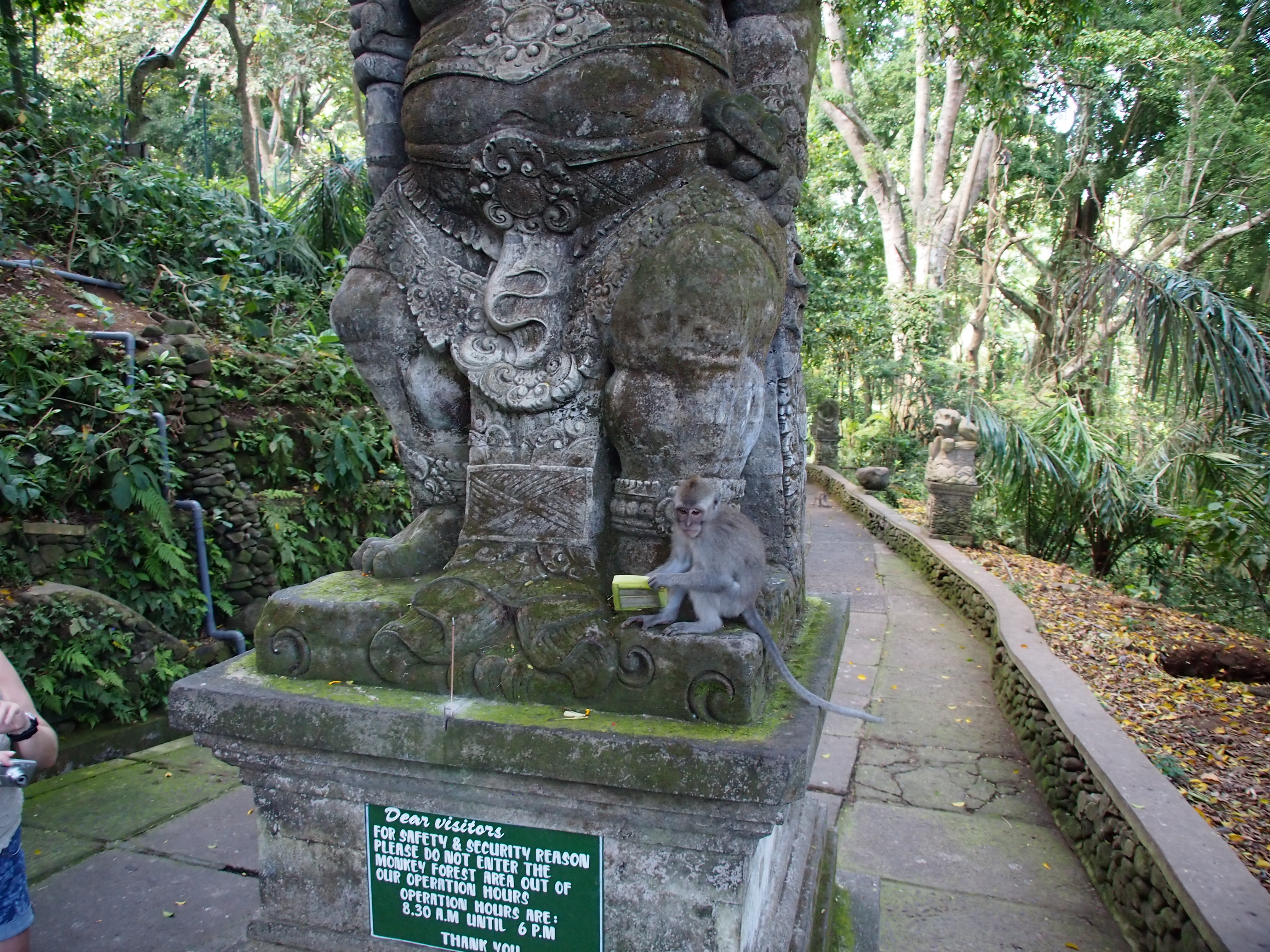 Um 09:00 Uhr ging heute Morgen unsere Rundreise mit der Fahrt zurück nach Sanur weiter. Als erstes sind wir in den Affenwald gefahren. Dort kann man wunderschön beobachten wie die Makaken durch die Bäume und über die Statuen klettern. Auch ein riesiger Ficus Benjamin mit Luftwurzeln über 30 m im Durchmesser verteilt haben wir dort bestaunt. Danach ging es weiter zu einer wunderschön im Hang gelegen Reis-Terrasse. Sehr interessant war auch ein Besuch in einem kleinen Gewürz und Kaffeehandel. Wir sahen die verschiedenen Bäume und Früchte welche hier wachsen. Auch konnten wir die verschiedenen Stufen der Kaffeeherstellung beobachten. Einschließlich der Mungos welche die Kaffeebohnen fressen und dann wieder ausscheiden was dann den berühmten Luwak Kaffee ergibt. All diese verschiedenen Sorten konnten wir hier probieren. Nach dem Mittagessen sind wir dann noch in eine Holzschnitzerei gefahren wo Peter sich einen Barong und Claudia sich einen Elefanten erhandelt haben. Auf speziellen Wunsch von Peter ging es dann noch zum Harley Händler bevor wir unser ausgewaschenes und getrocknetes Tauchgepäck in der Ena Tauchbasis in Empfang nehmen konnten. Dort haben wir dann den einen zusätzlichen Tauchtag bezahlt und bekamen eine landestypische Schnitzerei mit unserem Namen geschenkt. Angekommen im Puri Mesari Hotel haben wir die letzte Gelegenheit genutzt uns nochmal eine Massage zu gönnen und haben dann auch im Hotel lecker zu Abend gegessen.
