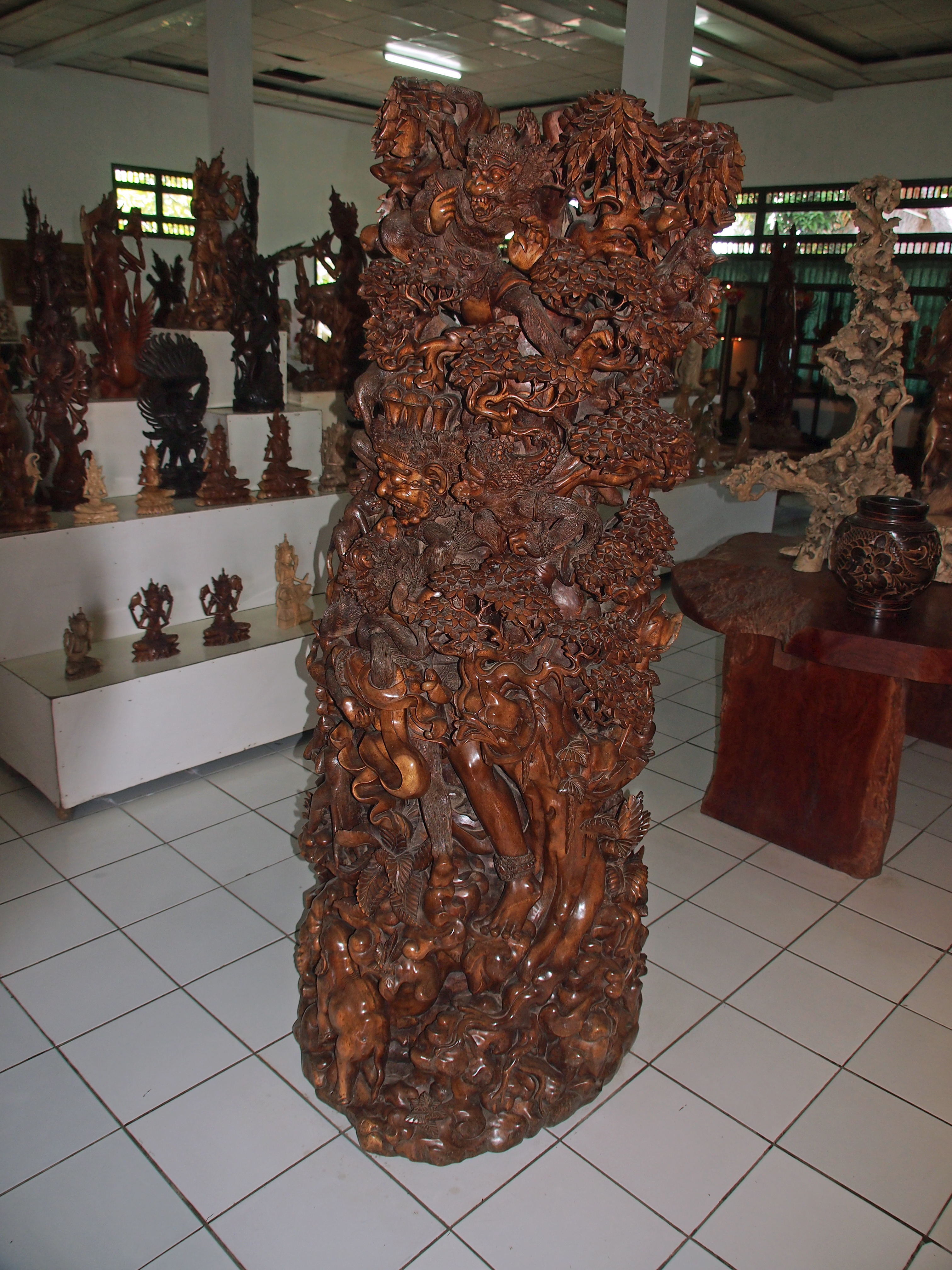 Um 09:00 Uhr ging heute Morgen unsere Rundreise mit der Fahrt zurück nach Sanur weiter. Als erstes sind wir in den Affenwald gefahren. Dort kann man wunderschön beobachten wie die Makaken durch die Bäume und über die Statuen klettern. Auch ein riesiger Ficus Benjamin mit Luftwurzeln über 30 m im Durchmesser verteilt haben wir dort bestaunt. Danach ging es weiter zu einer wunderschön im Hang gelegen Reis-Terrasse. Sehr interessant war auch ein Besuch in einem kleinen Gewürz und Kaffeehandel. Wir sahen die verschiedenen Bäume und Früchte welche hier wachsen. Auch konnten wir die verschiedenen Stufen der Kaffeeherstellung beobachten. Einschließlich der Mungos welche die Kaffeebohnen fressen und dann wieder ausscheiden was dann den berühmten Luwak Kaffee ergibt. All diese verschiedenen Sorten konnten wir hier probieren. Nach dem Mittagessen sind wir dann noch in eine Holzschnitzerei gefahren wo Peter sich einen Barong und Claudia sich einen Elefanten erhandelt haben. Auf speziellen Wunsch von Peter ging es dann noch zum Harley Händler bevor wir unser ausgewaschenes und getrocknetes Tauchgepäck in der Ena Tauchbasis in Empfang nehmen konnten. Dort haben wir dann den einen zusätzlichen Tauchtag bezahlt und bekamen eine landestypische Schnitzerei mit unserem Namen geschenkt. Angekommen im Puri Mesari Hotel haben wir die letzte Gelegenheit genutzt uns nochmal eine Massage zu gönnen und haben dann auch im Hotel lecker zu Abend gegessen.