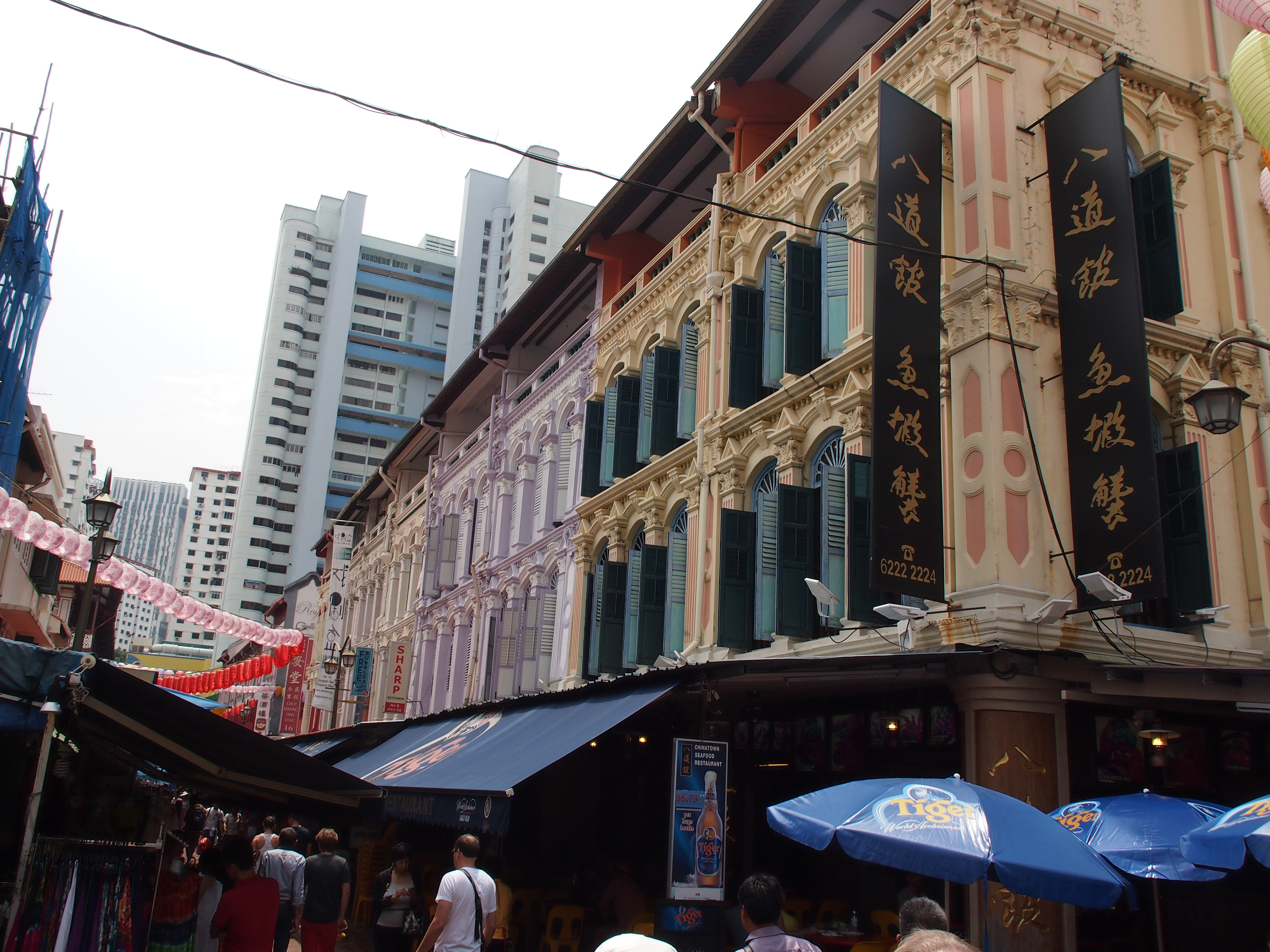 Nach dem Frühstück haben wir uns heute Morgen mit der MRT auf den Weg nach Little India gemacht. Wir haben uns die Tempel: "Veerama Kaliamman" und "Srinivase Perumal" angesehen welche für uns Europäer doch sehr "bunt" aber auch sehr schön sind. Im "Tempel of 1000 Lights" beeindruckt hingegen die große Buddha-Statue. Aber auch der Distrikt selbst und das "Mustafa Center" wo es auf 5 Ebenen fast alles gibt haben mir sehr gut gefallen. Dann fuhr ich weiter nach "Chinatown". Am eindrucksvollsten ist es einfach durch die Pagoda-, Temple- und Smith Street zu schlendern und in die Geschäfte zu schauen was dort angebotenen wird. Die vielen exotischen Zutaten zum Essen oder "Heilen", die andersartigen Gebrauchsgegenstände aber auch die kleinen bunten Häuschen selbst fand ich sehr eindrucksvoll. Bei der Rückfahrt habe ich mir dann noch den "Clark Quay" angesehen. Hier gibt es eine große Zahl an Restaurants welche in hübsch anzusehenden Häusern in der überdachten Straße nebeneinander stehen. Zum Abendessen sind wir dann in Richtung "Boat Quay" gelaufen wo wir in einem gemütliches Restaurant am Wasser gegessen haben.