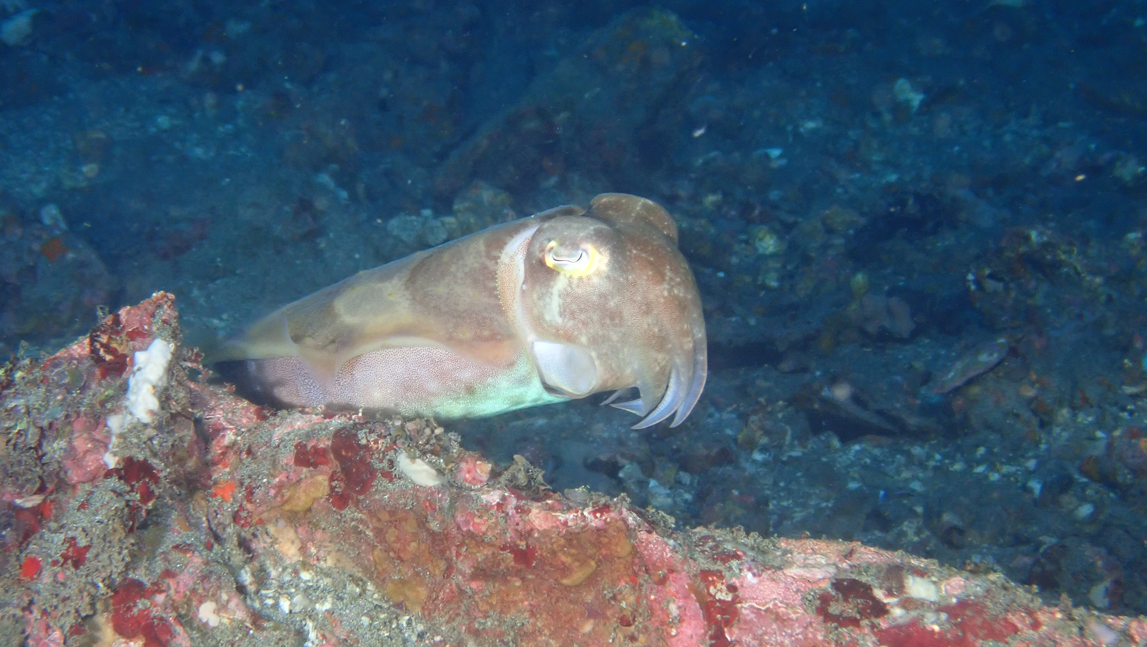 Wir haben heute 2 Tauchgänge am alten Landungssteg nur 10 Bootsminuten von unserer Tauchbasis entfernt unternommen. Die Stützen, auf welchen der Steg ruht, sind sehr schön bewachsen. Auch viele Weichkorallen befinden sich daran. Mit ein wenig Suchen lassen sich, neben den üblichen Fischen, viele Steinfische, Anglerfische, Seenadeln, Krokodilfische und viele Igelfische finden. Ein sehr entspannter TG.