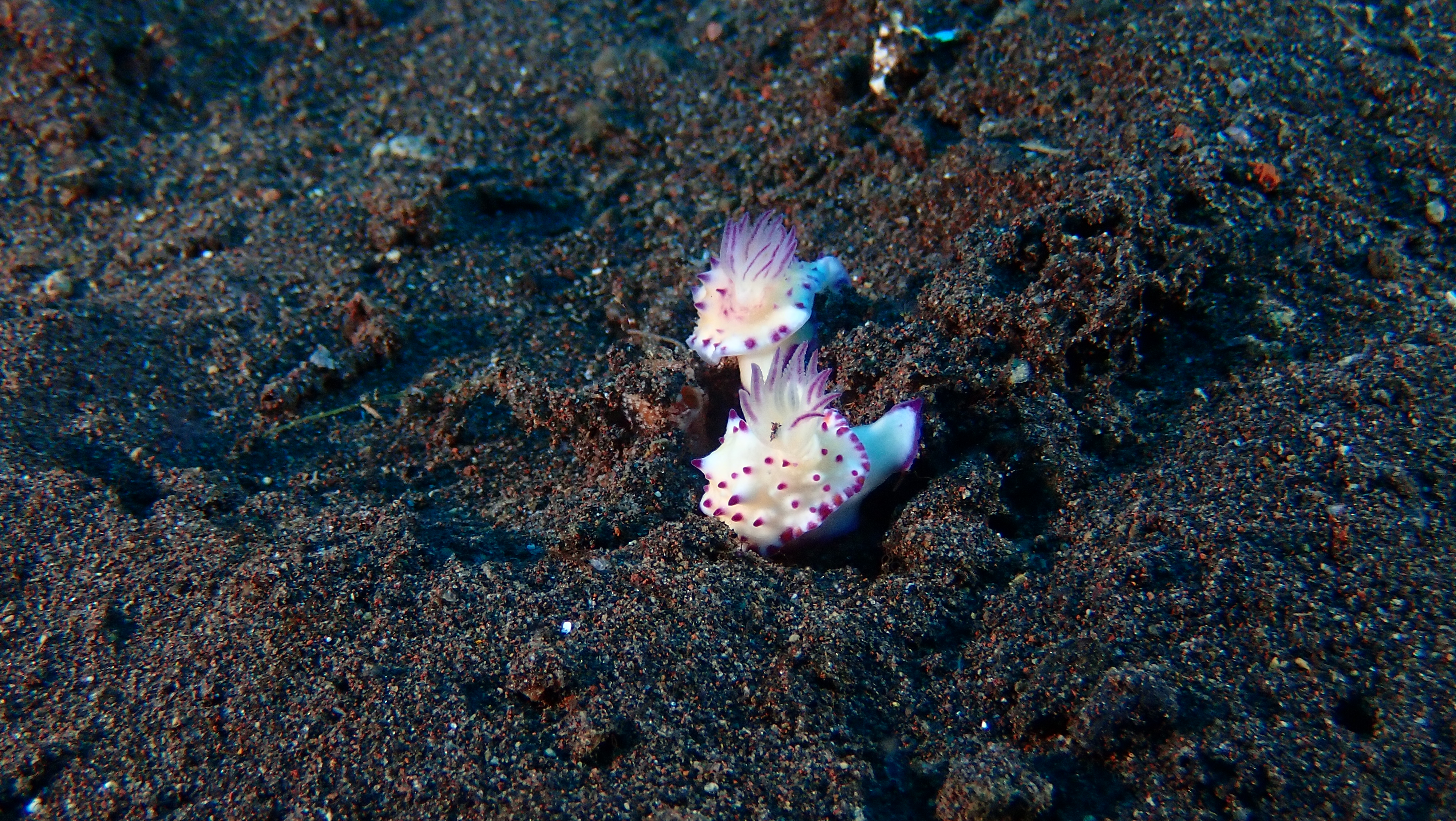 Heute haben wir 3 TG unternommen. Um 08:00 Uhr schon einen TG am Liberty Wrack. Dort haben wir 2 große Büffelkopf-Papageienfische gesehen. Aber es war viel Strömung somit bleibt mir der TG in keiner guten Erinnerung. Der zweite und dritte TG an den Makropunkten Seraya Secret und Batu Balah waren dagegen sehr schön und wir konnten Harlekin Garnelen, Schaukelfische, Garnelen, einen Geisterfetzenfisch und sehr viele Schnecken beobachten.