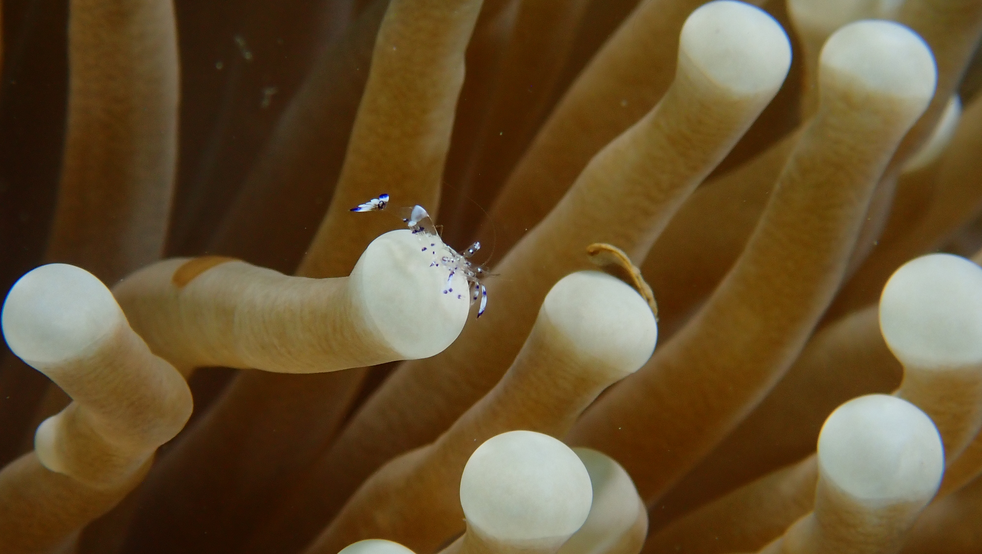 Heute haben wir 3 Tauchgänge unternommen. Der erste an einer Steilwand mit vielen Schnecken. Der zweite auf Sand war sehr schön. Unter anderen sahen wir einen Geisterpfeifenfisch, Seepferdchen und eine Flammenden Sepia. Der dritte war dann gleich vor dem Resort, mit dem Highlight eines haarigen Anglerfisches.