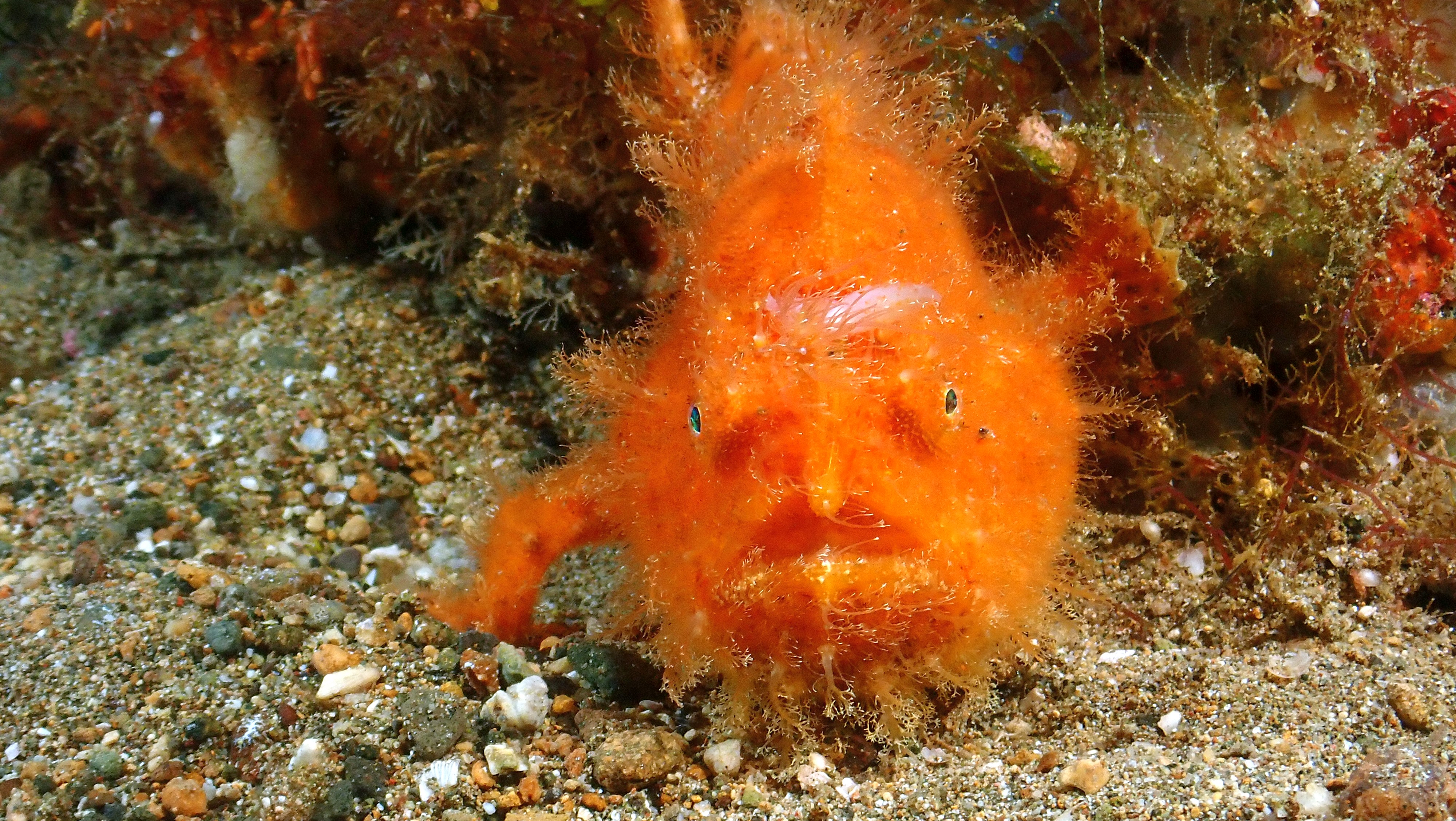 Heute haben wir 3 Tauchgänge unternommen. Der erste an einer Steilwand mit vielen Schnecken. Der zweite auf Sand war sehr schön. Unter anderen sahen wir einen Geisterpfeifenfisch, Seepferdchen und eine Flammenden Sepia. Der dritte war dann gleich vor dem Resort, mit dem Highlight eines haarigen Anglerfisches.