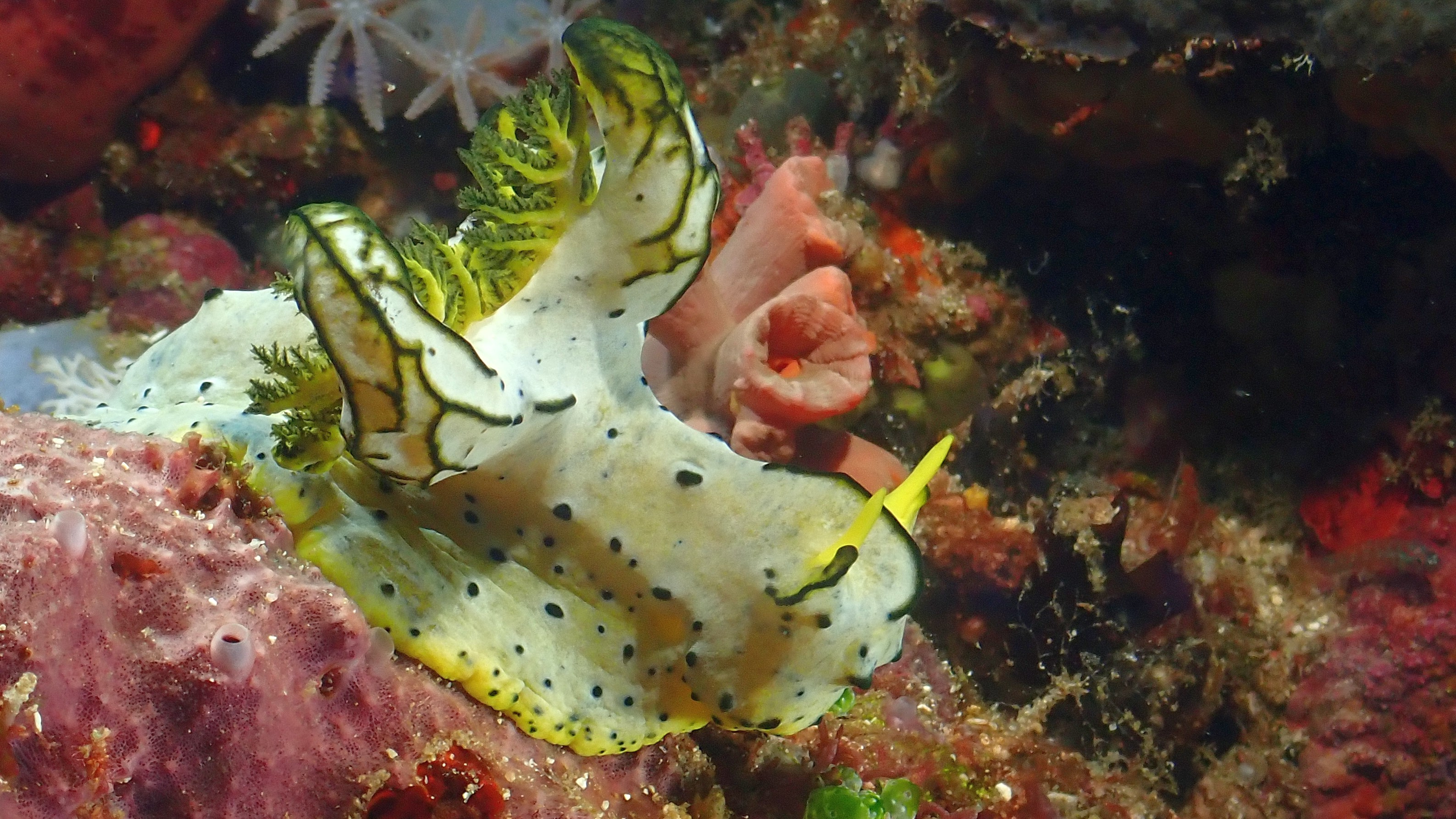 Heute hatten wir 3 schöne Tauchgänge. Der erste an einer Steilwand mit vielen Nacktschnecken. Der Zweite dann mit tollen Korallen und Ferdersternen. Beim dritten Tauchgang konnten wir uns dann auch im „Whirlpool“ erholen.