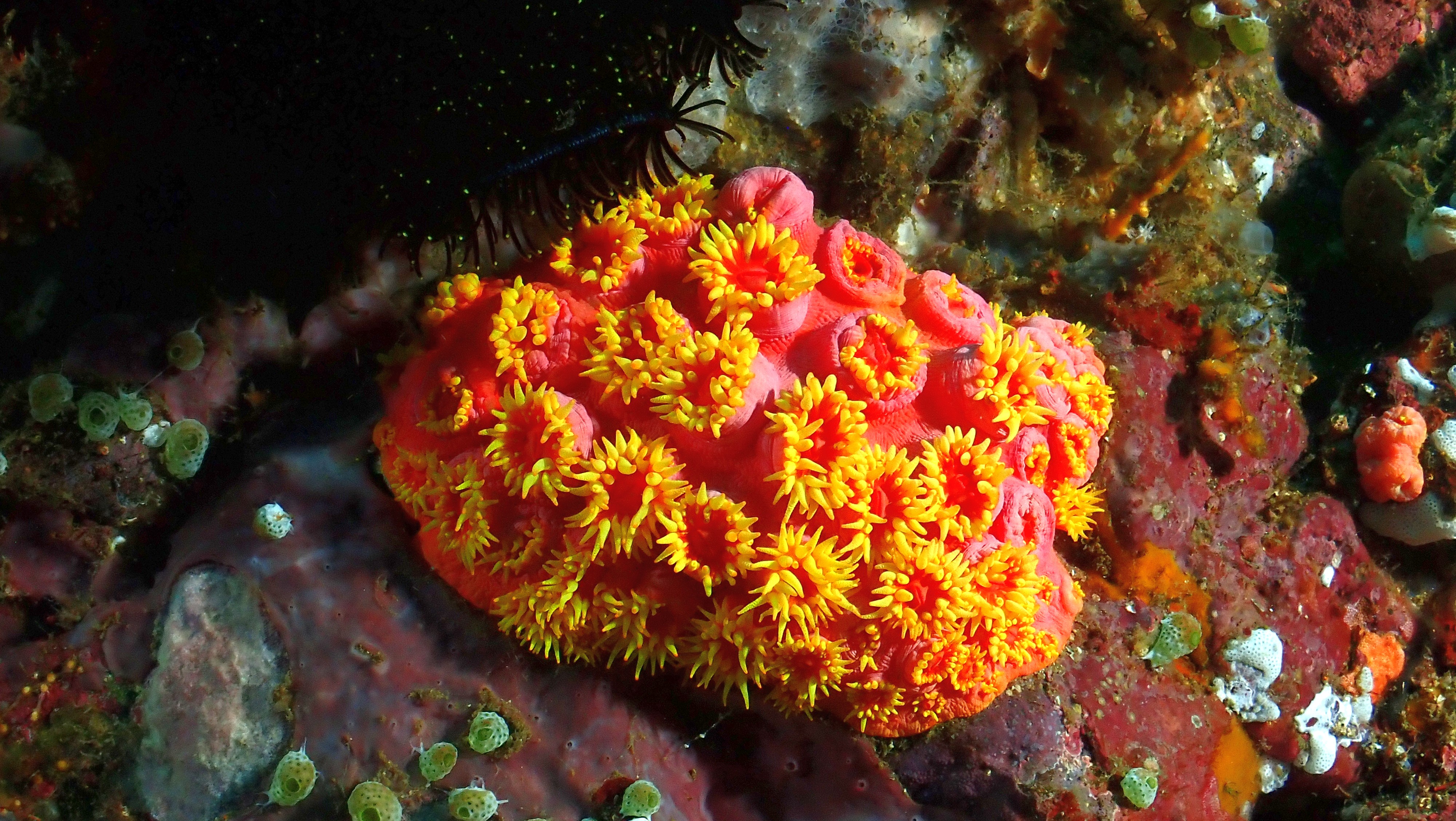 Das beeindruckendste bei den beiden Tauchgängen waren heute die 4 orangefarbenen kleinen Anglerfische, wobei einer sogar ein haariger Anglerfisch war.