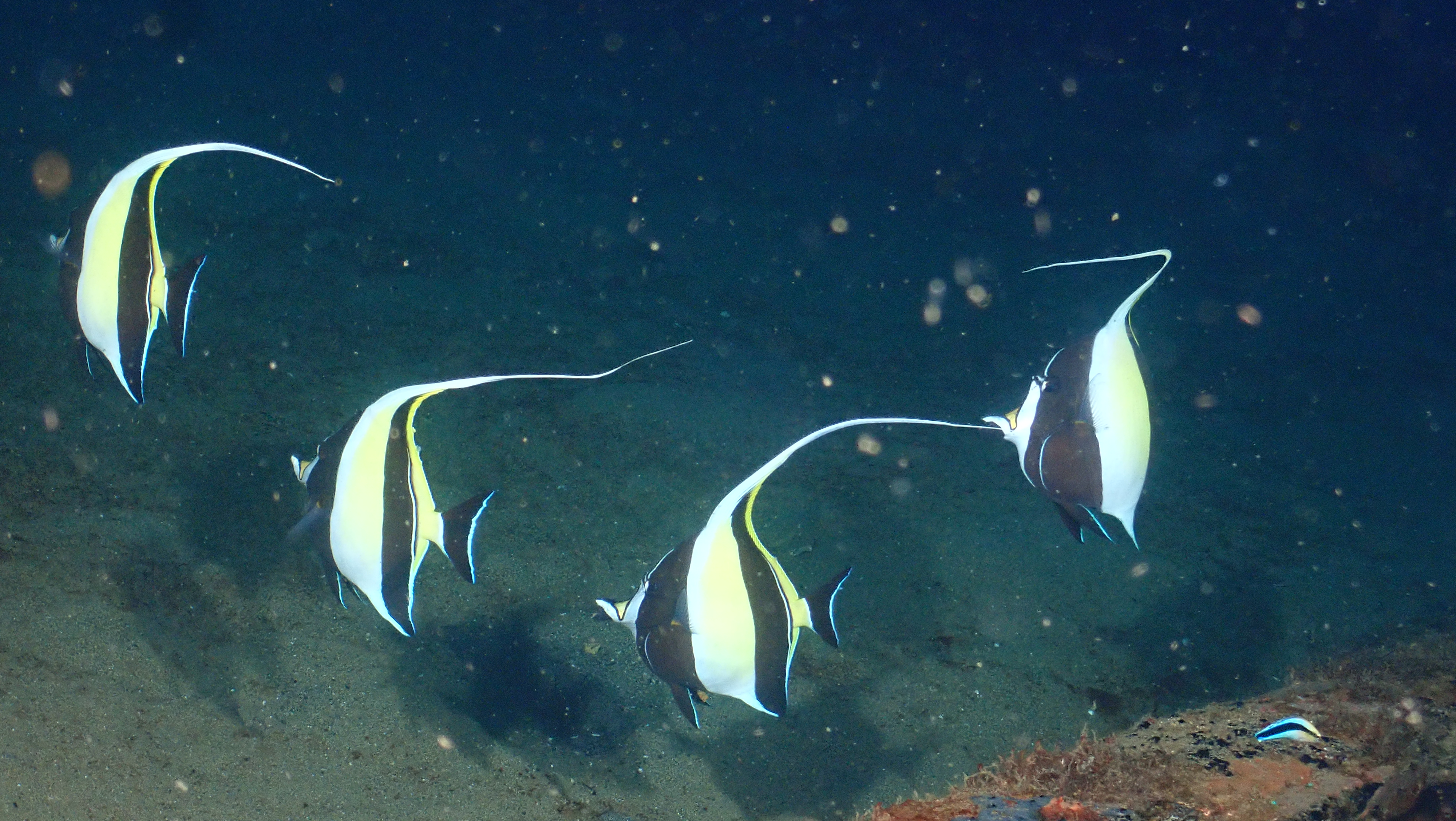 Heute waren wir wieder dreimal tauchen. Zweimal haben wir einen „Finger Leierfisch“ gesehen. Auch die winzige „Blattschaf“ Schnecke und die "Blue Dragon" Schnecken jeweils mit Gelege waren beeindruckend. Schön waren auch die 3 Anglerfische. Aber besonders gefallen hat mir heute, dass ich brauchbare Fotos von den Pygmäen Seepferdchen machen konnte.
