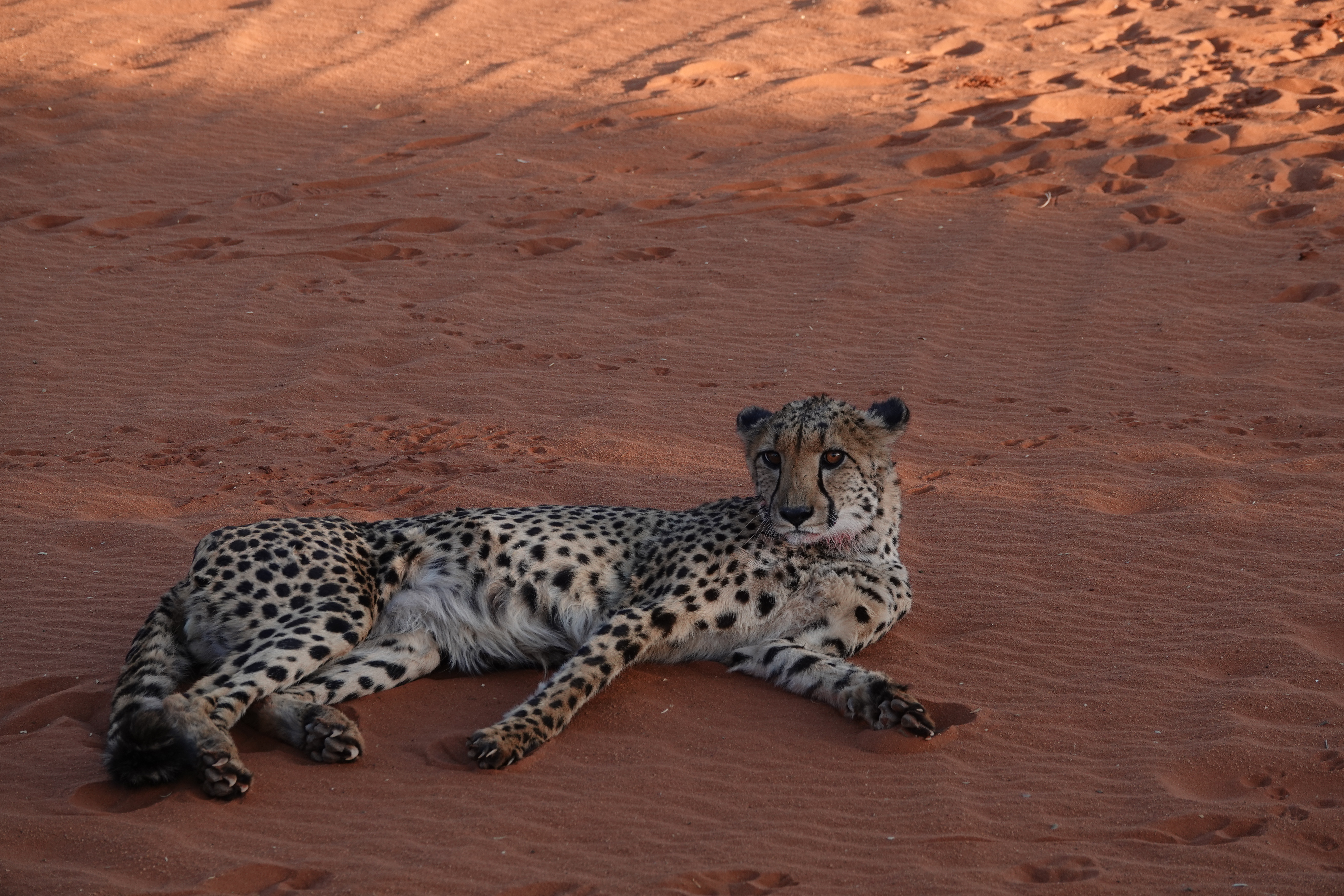 Das absolute Highlight war jedoch die Gepardenfütterung. Die Bagatelle Lodge kümmert sich um junge Geparden, die verwaist sind und ohne Hilfe nicht überlebt hätten. Es war faszinierend zu sehen, wie die Geparden dem Rangerjeep hinterherjagten, um ihre Mahlzeit zu erhalten.