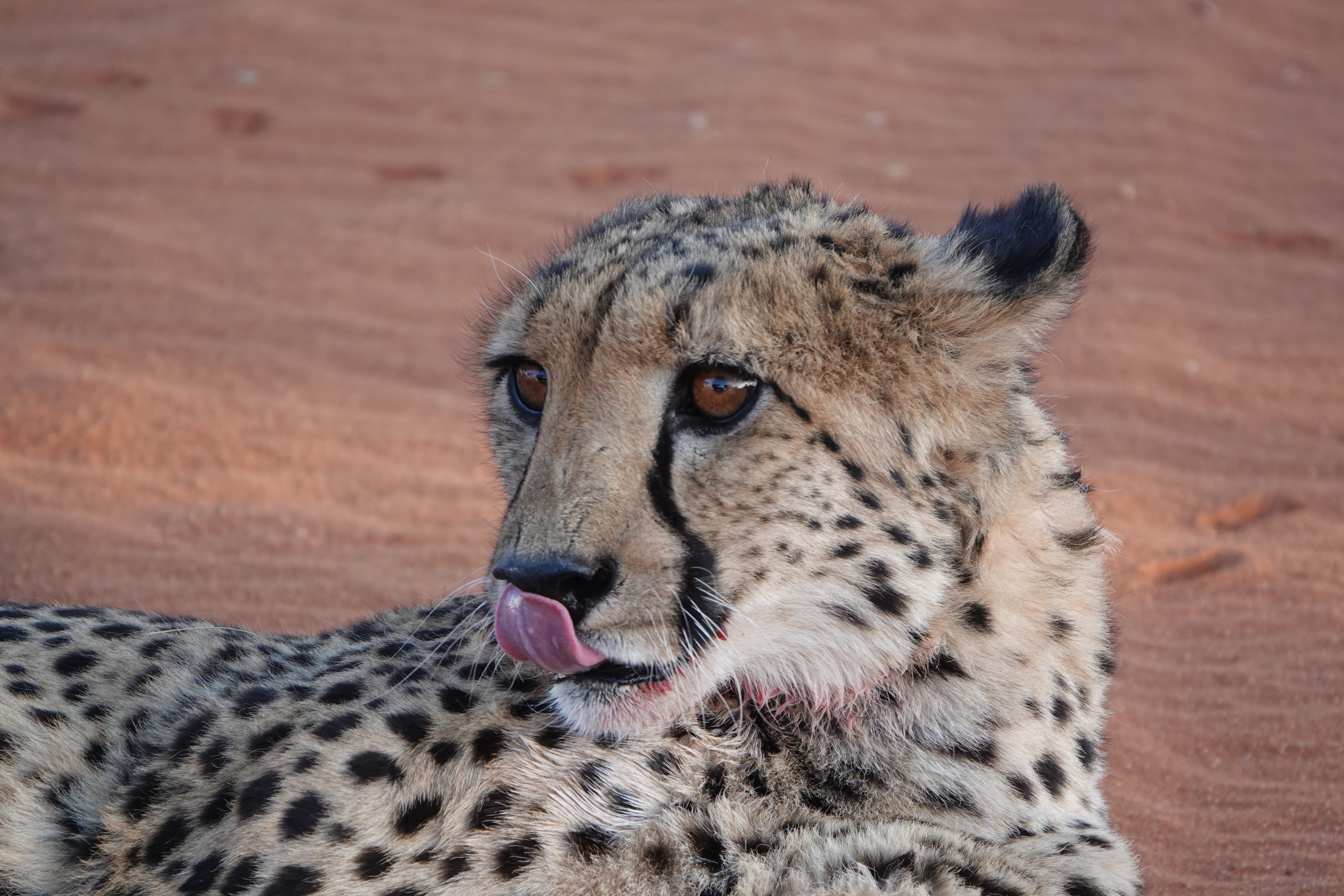 Das absolute Highlight war jedoch die Gepardenfütterung. Die Bagatelle Lodge kümmert sich um junge Geparden, die verwaist sind und ohne Hilfe nicht überlebt hätten. Es war faszinierend zu sehen, wie die Geparden dem Rangerjeep hinterherjagten, um ihre Mahlzeit zu erhalten.