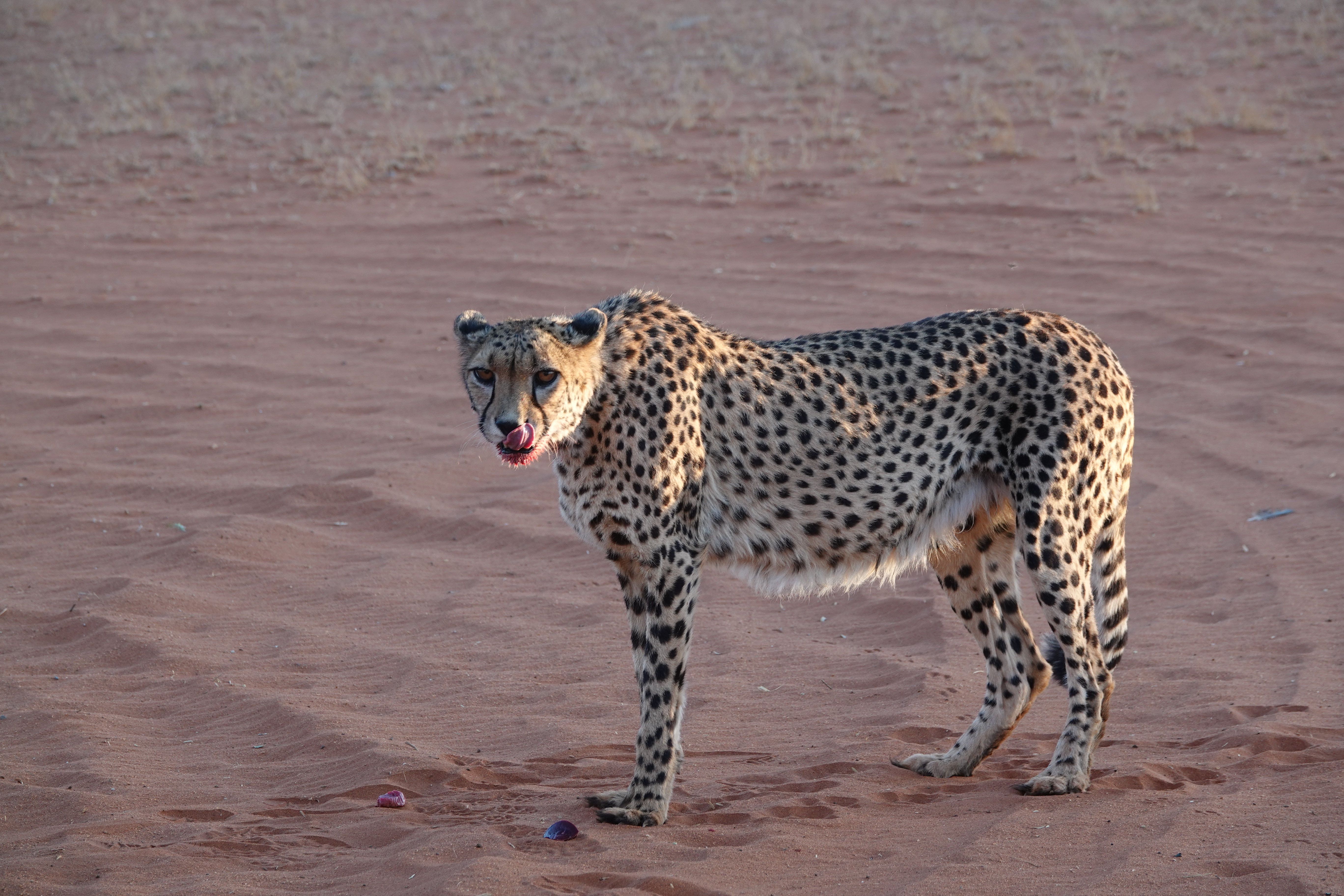 Das absolute Highlight war jedoch die Gepardenfütterung. Die Bagatelle Lodge kümmert sich um junge Geparden, die verwaist sind und ohne Hilfe nicht überlebt hätten. Es war faszinierend zu sehen, wie die Geparden dem Rangerjeep hinterherjagten, um ihre Mahlzeit zu erhalten.