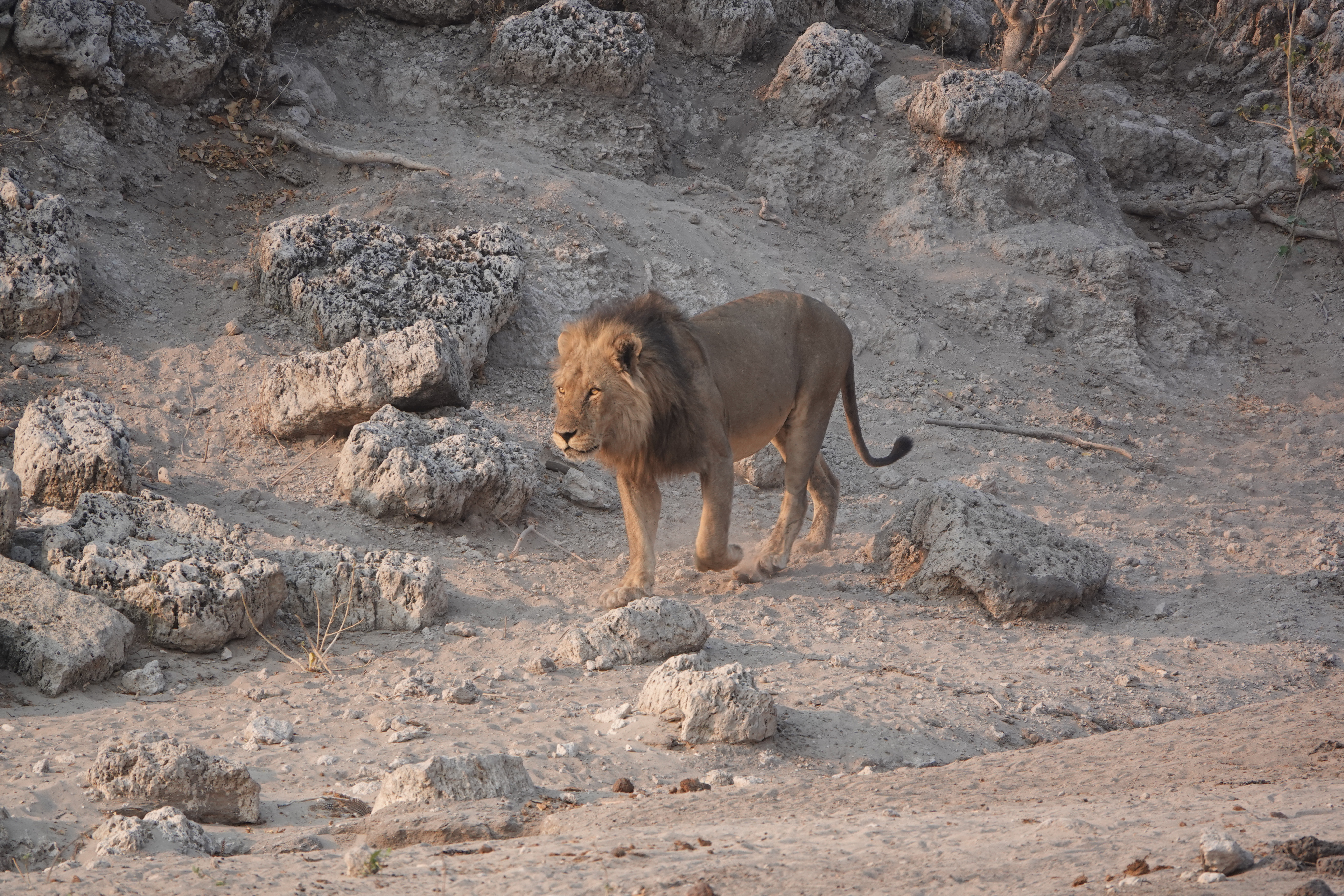 Heute starteten wir bereits um 06:30 Uhr zu einer Frühpirsch auf dem Chobe-Fluss. Unser Guide hatte den Tipp bekommen, dass sich ein stattlicher Löwe in der Nähe des Ufers aufhält – und wir hatten tatsächlich Glück. Nachdem der Löwe etwa 10 Minuten lang entspannt auf dem Damm gelegen hatte, stand er plötzlich auf und spazierte direkt vor uns zum Fluss hinunter. Ein beeindruckendes Naturschauspiel!