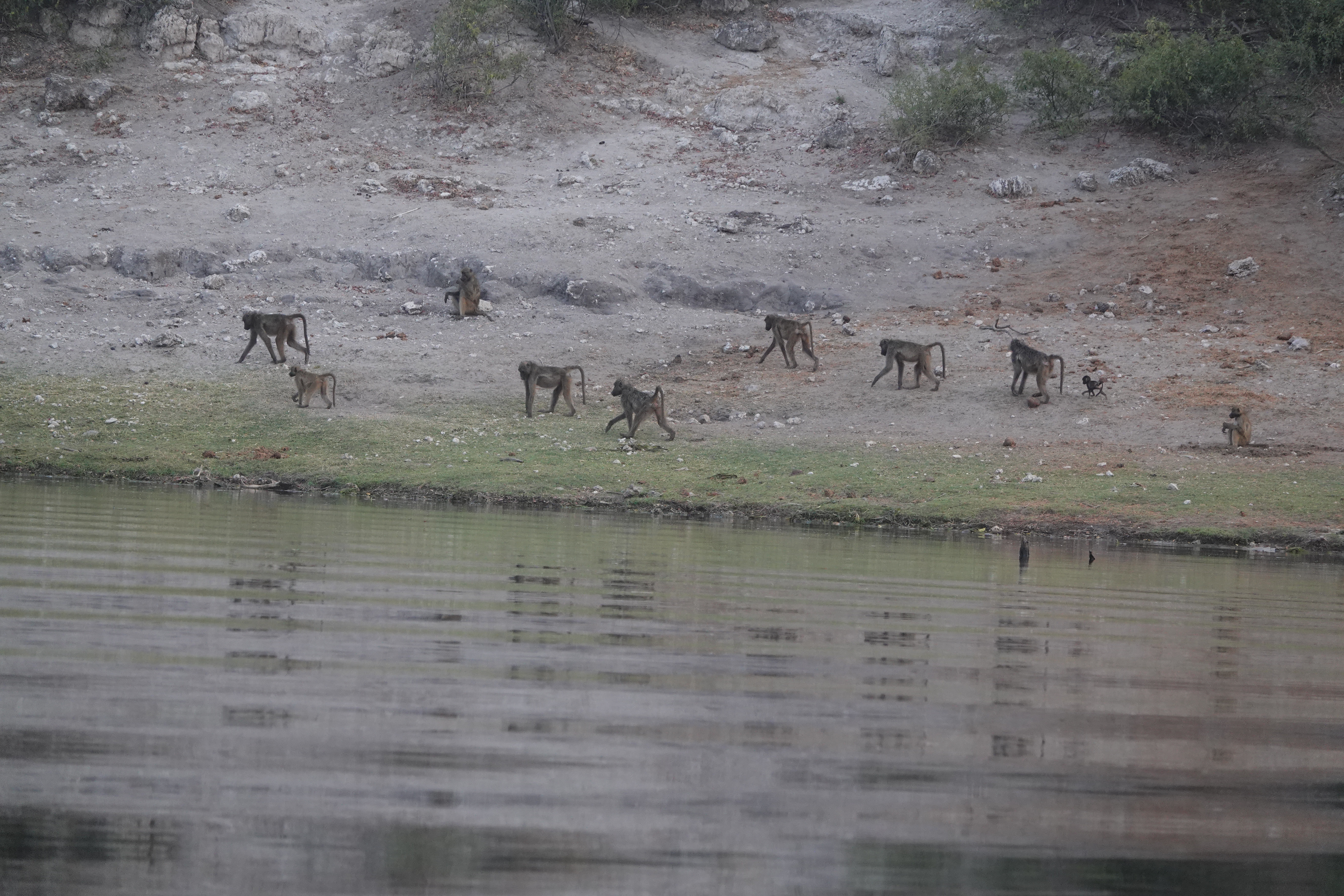 Heute starteten wir bereits um 06:30 Uhr zu einer Frühpirsch auf dem Chobe-Fluss. Unser Guide hatte den Tipp bekommen, dass sich ein stattlicher Löwe in der Nähe des Ufers aufhält – und wir hatten tatsächlich Glück. Nachdem der Löwe etwa 10 Minuten lang entspannt auf dem Damm gelegen hatte, stand er plötzlich auf und spazierte direkt vor uns zum Fluss hinunter. Ein beeindruckendes Naturschauspiel! Zum Sundowner, um 16:00 Uhr, unternahmen wir eine weitere Pirschfahrt mit dem Boot. Es war ein entspannter Abschluss des Tages mit wunderschönen Aussichten auf die Landschaft.