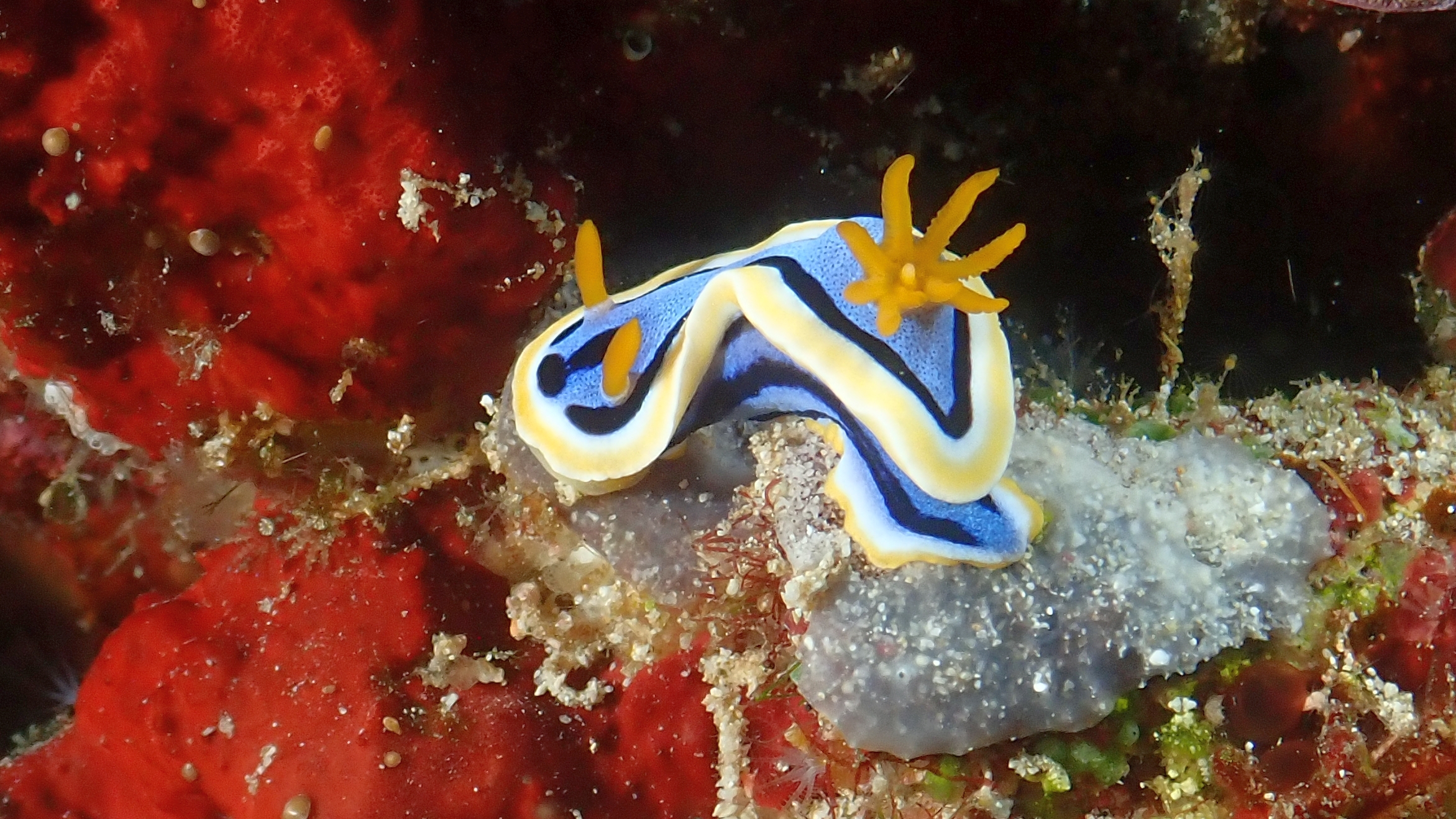Der erste Tauchgang des Tages brachte diesmal nicht allzu viele Besonderheiten. Spannender wurde es beim zweiten: Nach wenigen Minuten gerieten wir in eine starke Strömung, die uns erst rasant an der Steilwand entlangtrieb und schließlich auch noch in der Höhe herumwirbelte. Sicherheitshalber brachen wir den Tauchgang ab. Ganz anders dagegen der Nachttauchgang – ein echtes Erlebnis! Im Licht unserer Lampen sahen wir einen Rotfeuerfisch und einen Schaukelfisch bei der Jagd, entdeckten einen kleinen Anglerfisch und zum krönenden Abschluss gleich zwei seltene Harlekingarnelen. Ein unvergesslicher Abschluss des Tauchtages.