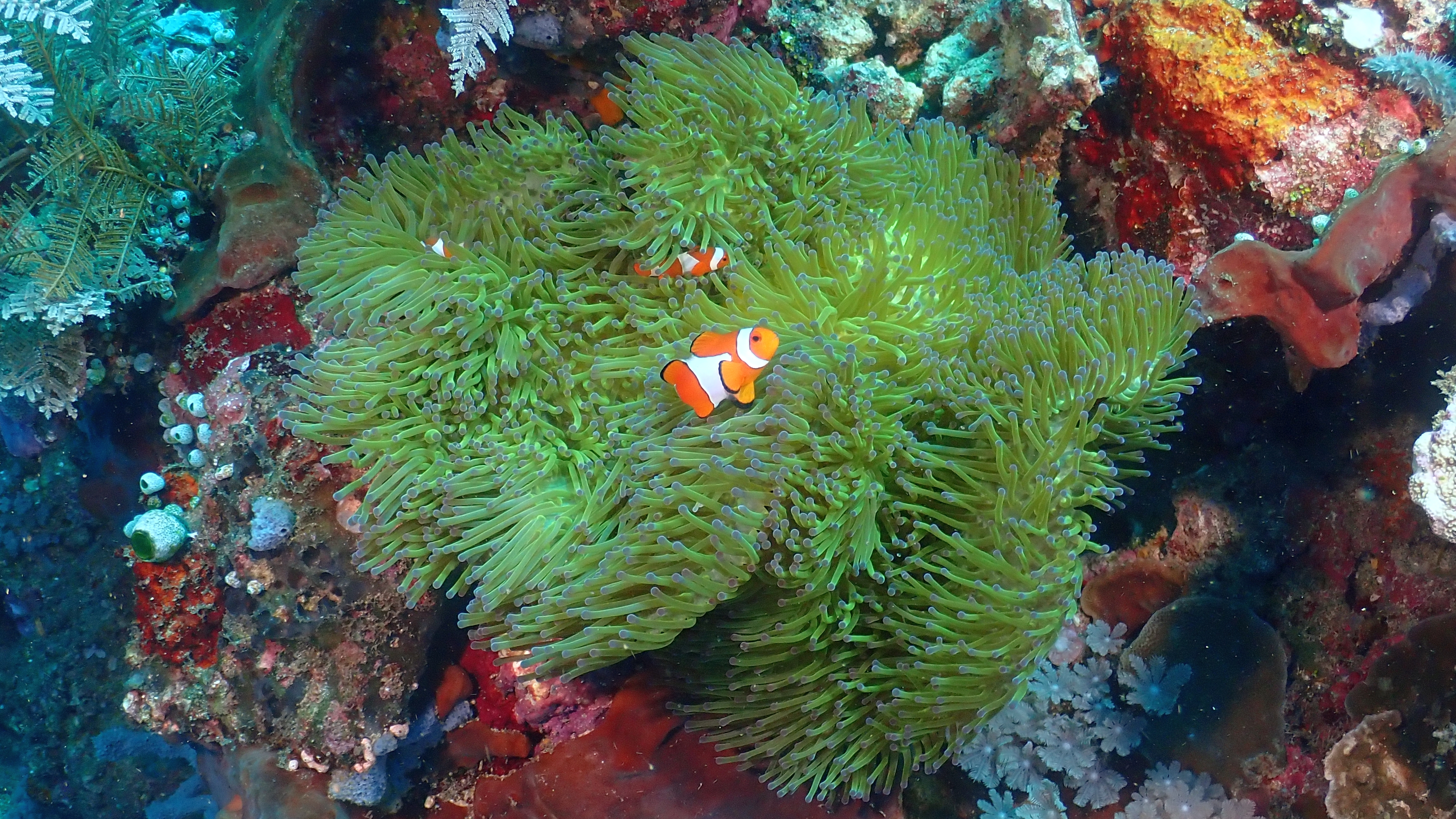 Diesmal führte uns das Boot auf die Festlandseite in Richtung Manado, wo wir zwei spannende Tauchgänge unternahmen. Besonders beeindruckend waren ein eleganter Geisterpfeifenfisch und – als Highlight – ein Geisterfetzenfisch. Ein gebänderter Kieferfisch sorgte außerdem für ein Schmunzeln, als er rückwärts in seine Höhle „einparkte“.